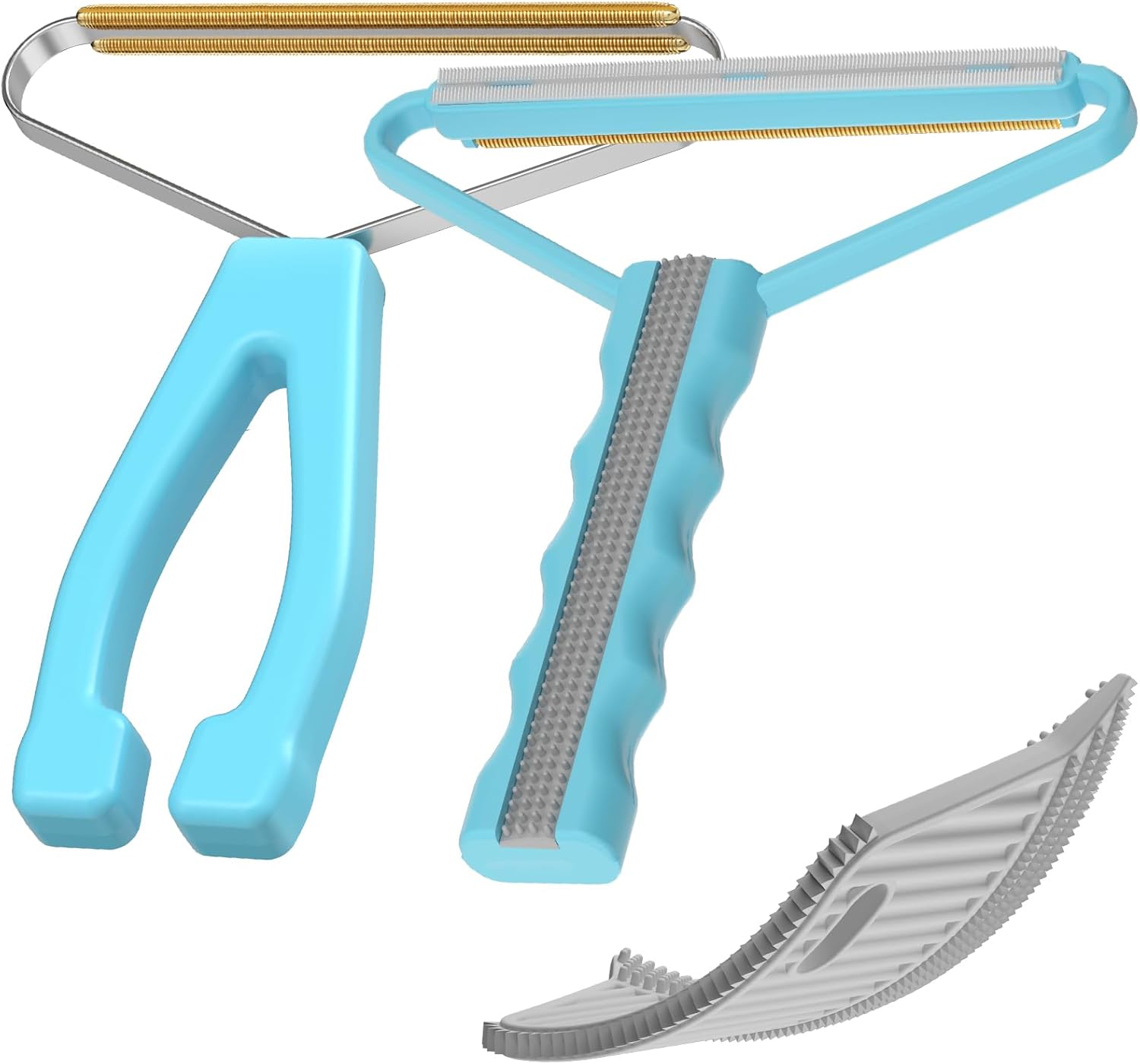 - WIDELY USE:3 Types Reusable Pet Hair Remover for Different Materials --- Copper pet hair remover be used for heavy duty and thick piled items, such as carpet, rug, couch, furniture, blanket, cat tree, car interiors, winter coats and etc. Plastic fabric shaver can be used for soft and thin fabrics, like upholstery, ottoman, velvet, bed sheet, sweatshirt and etc. Soft Rubber Brush:Crafted from premium TPR, This product embodies safety, reliability, and meticulous craftsmanship,its high-quality build provides peace of mind during grooming.Easily remove pet hair from curved surfaces and corners