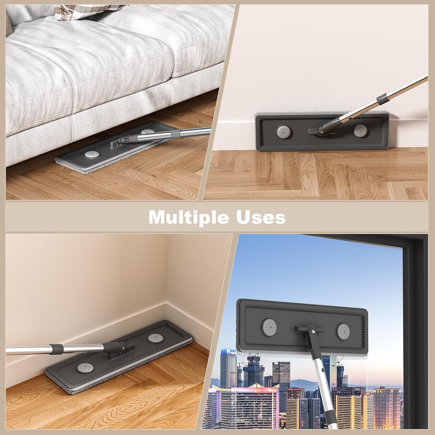 • REACH INTO : flat floor mop have 360°rotatable rectangular mop heads which makes it more suitable for cleaning corners and narrow spaces than triangular and round mops. Perfect for floor and window cleaning in home and office.