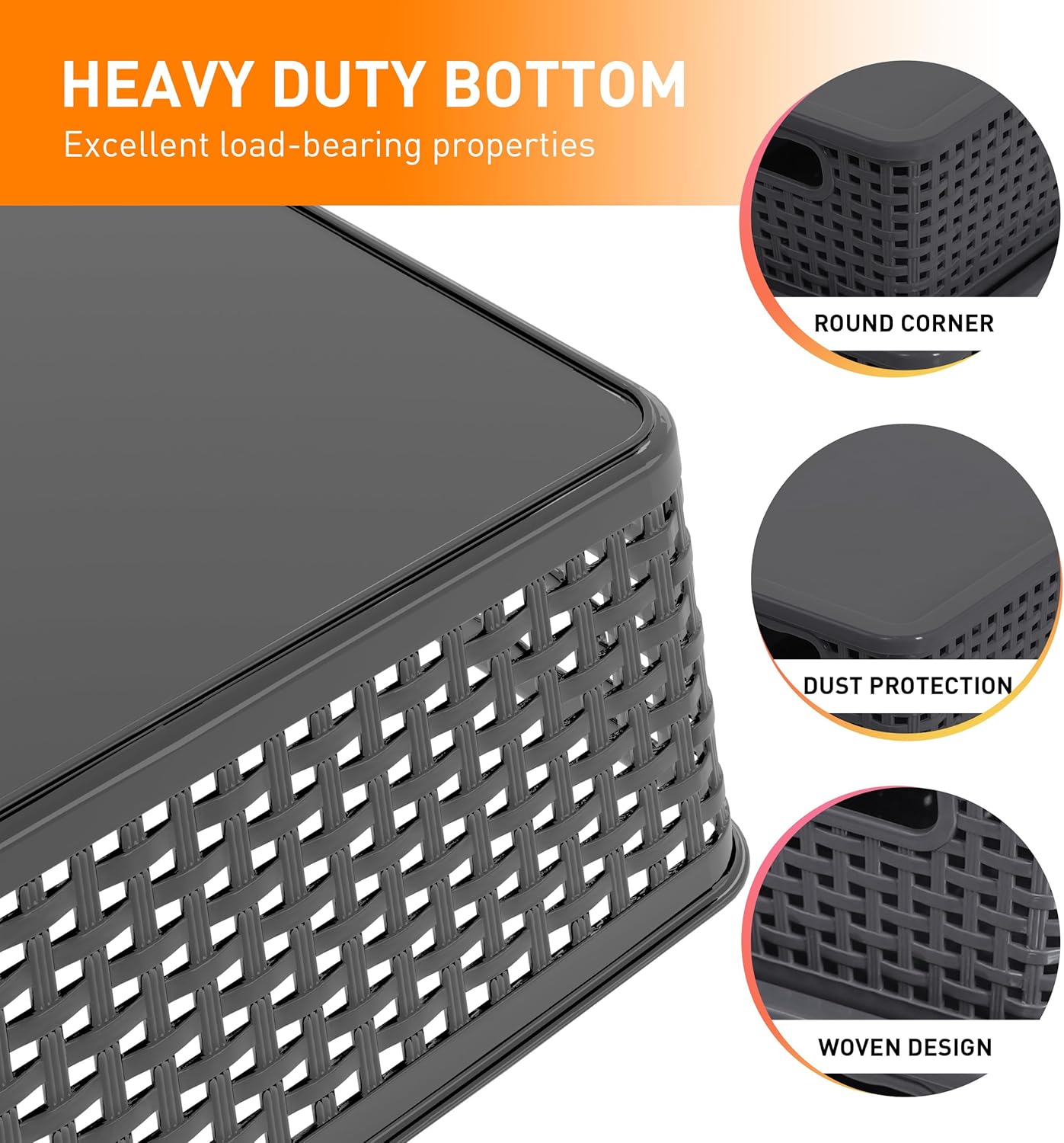 • Easily Accessible:Each plastic woven storage basket features a snug-fitting lid to protect contents from debris, keeping items intact. The lids open smoothly for quick access, ensuring both security and convenience