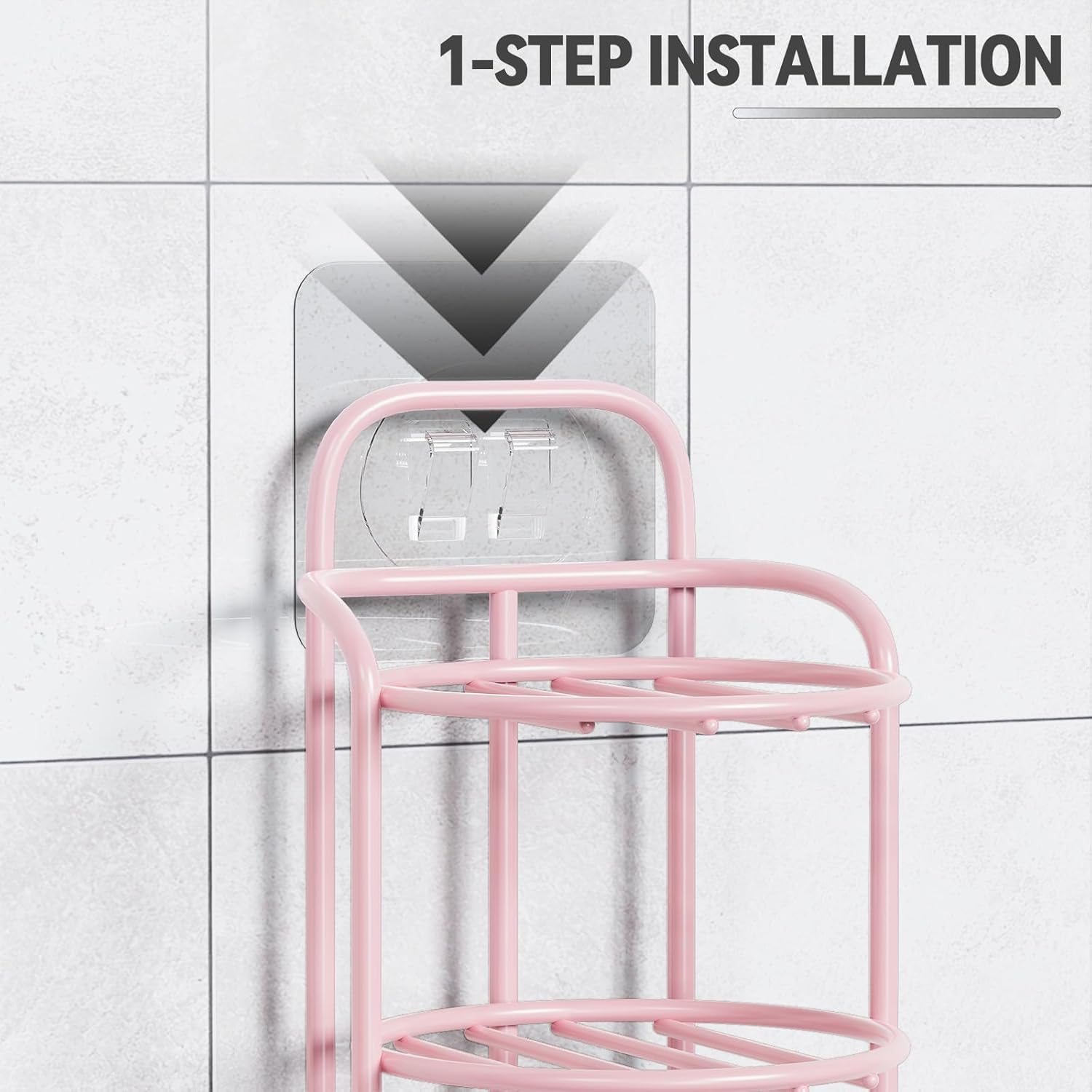 Pink 3-Tier Shower Soap Shampoo Bar Holder, Self Adhesive & Freestanding Draining Soap Dish Caddy for Bathroom Wall Accesories Decor