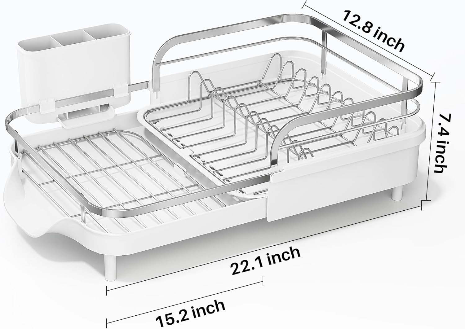 • Flexible Fit for Kitchen Counter: Whether you're working with limited space or handling extra dishes after a meal, this extendable dish rack easily adjusts from 15.3" to 22.2" to meet your needs—keeping your kitchen gadgets organized and within reach
