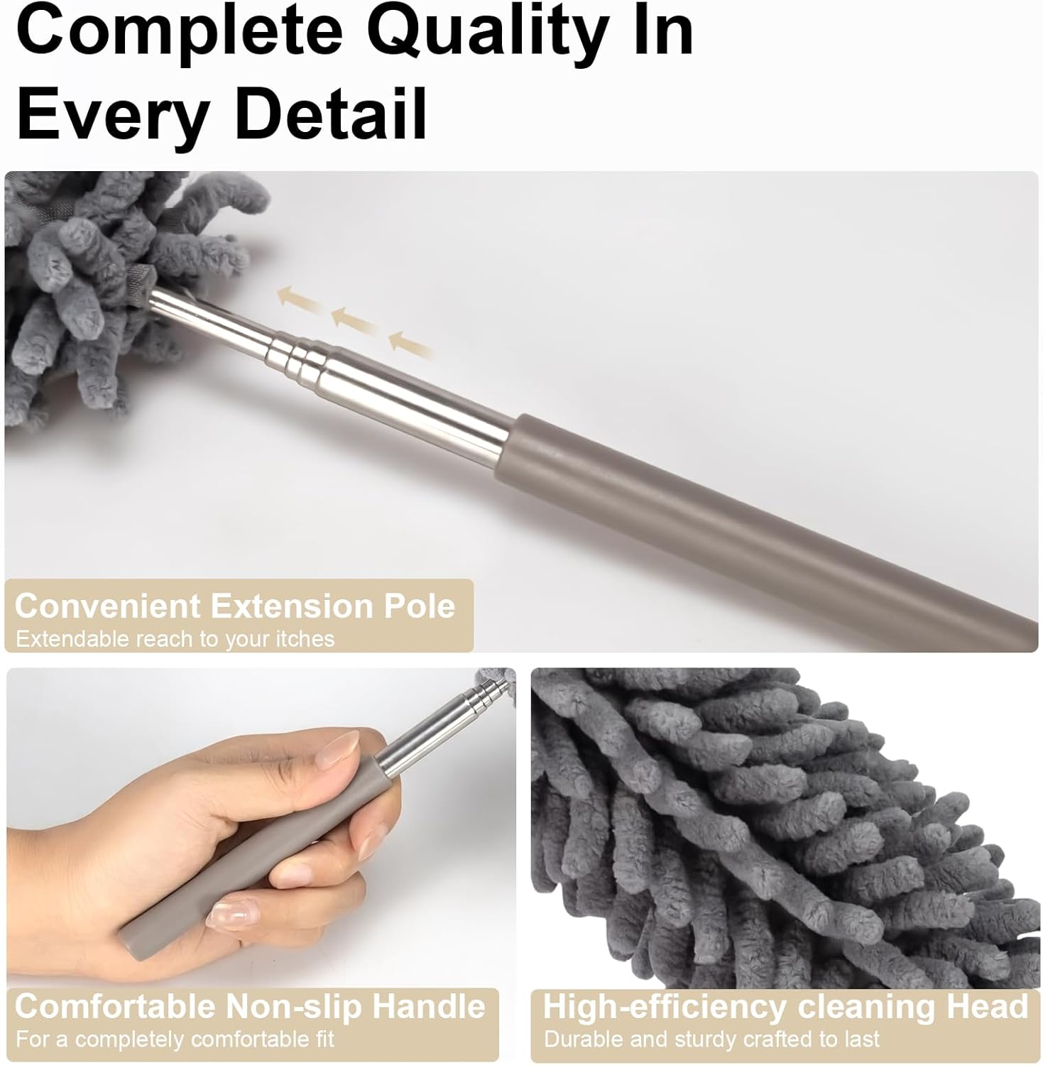• 【Telescopic Handle】:With an extendable pole that reaches up to 30 inches, this duster effortlessly cleans corners at various heights. When folded, it's compact and easy to store, making it a convenient cleaning tool for any space.