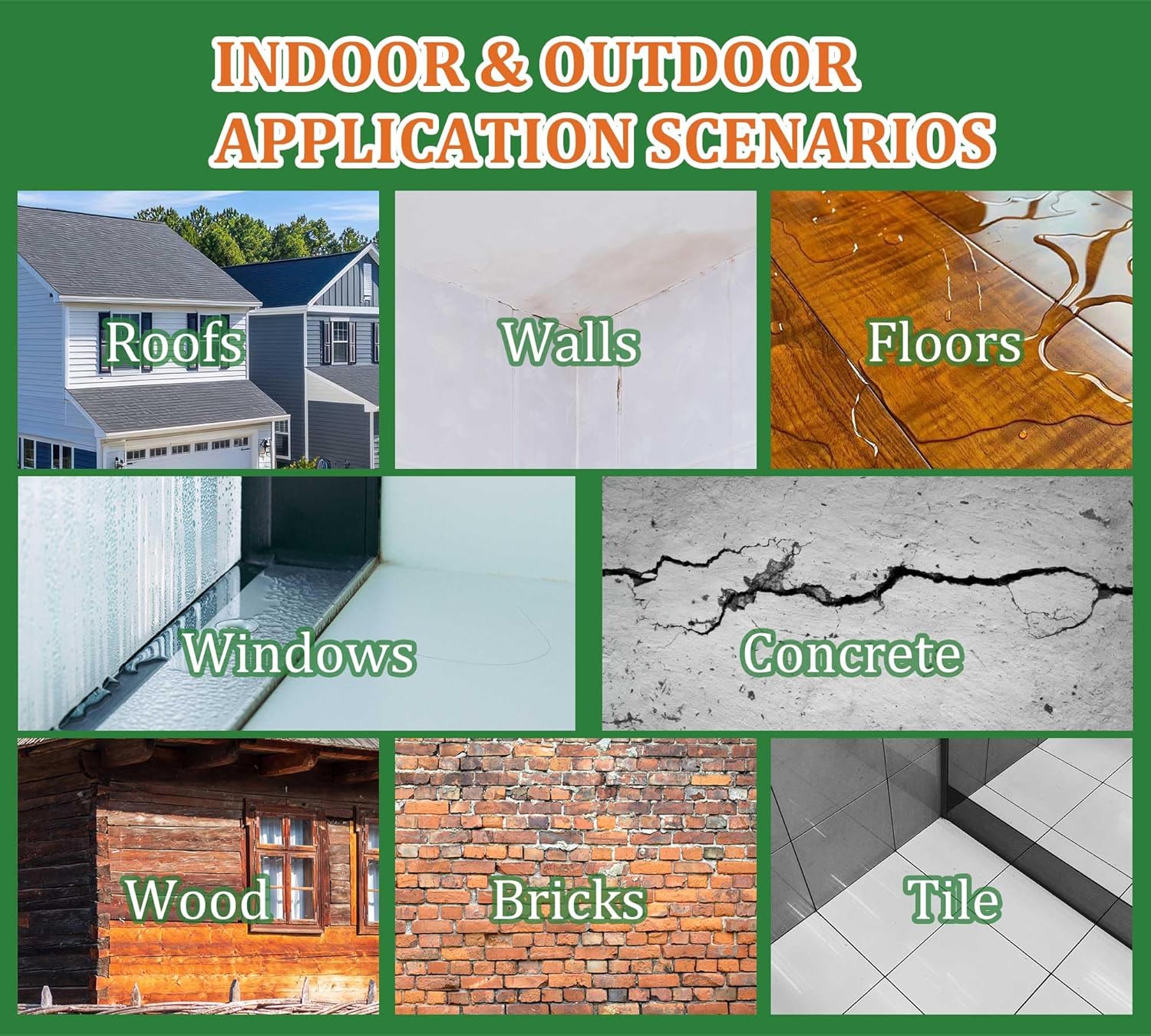 - Versatile Waterproof Sealant Applications: Use this invisible waterproof agent for indoors & outdoors on roofs, floor, bathroom, walls, basements, gutters, skylights, pipes, and window sills. Suitable for wood, concrete, metal, ceramics, brick sealant projects. Whether indoors or outdoors, it handles leaks and cracks effortlessly.