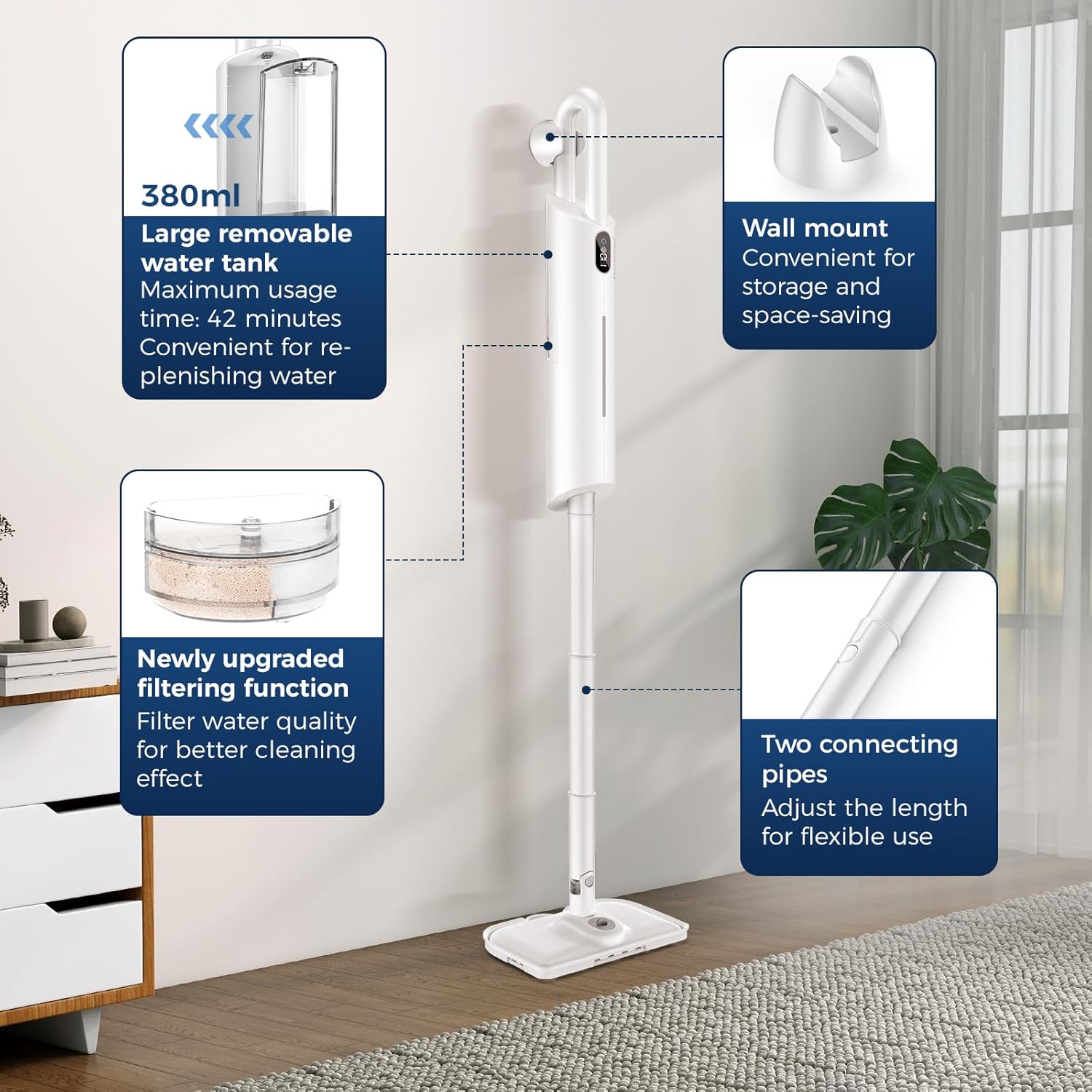 Steam Mop All-in-one for Floor Cleaning, MultiPurpose Steam Cleaner for Home with LED display screen, Detachable Handheld Floor Steamer with Scent Container and strap for Hardwood,Tiles and Carpet
