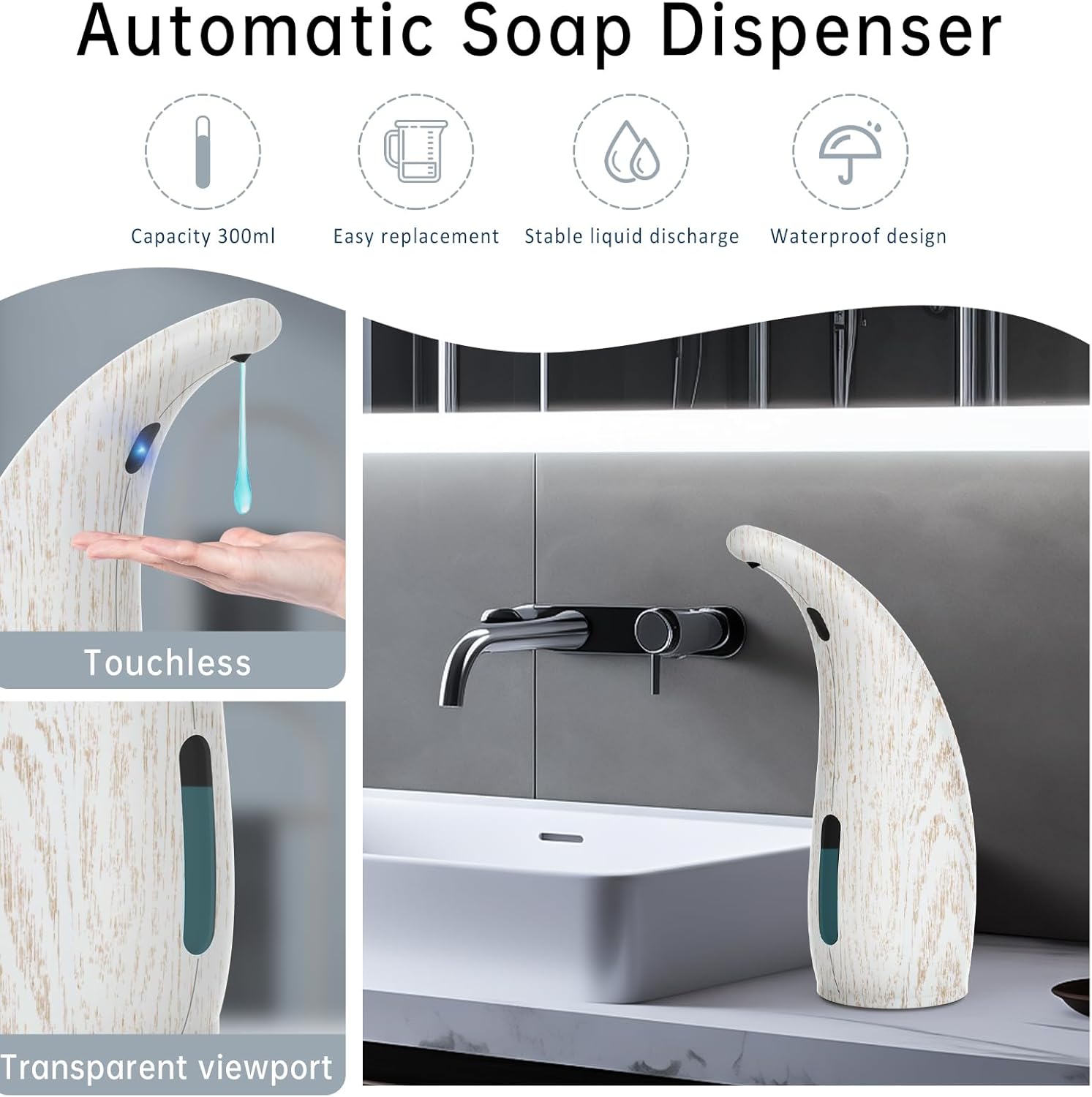 Automatic Liquid Soap Dispenser,300ML Touchless 4 Gear Adjustable,Countertop Electric Battery Operated Hand Soap Dispenser with Sensor for Bathroom,Kitchen,Office(White Wood Grain)