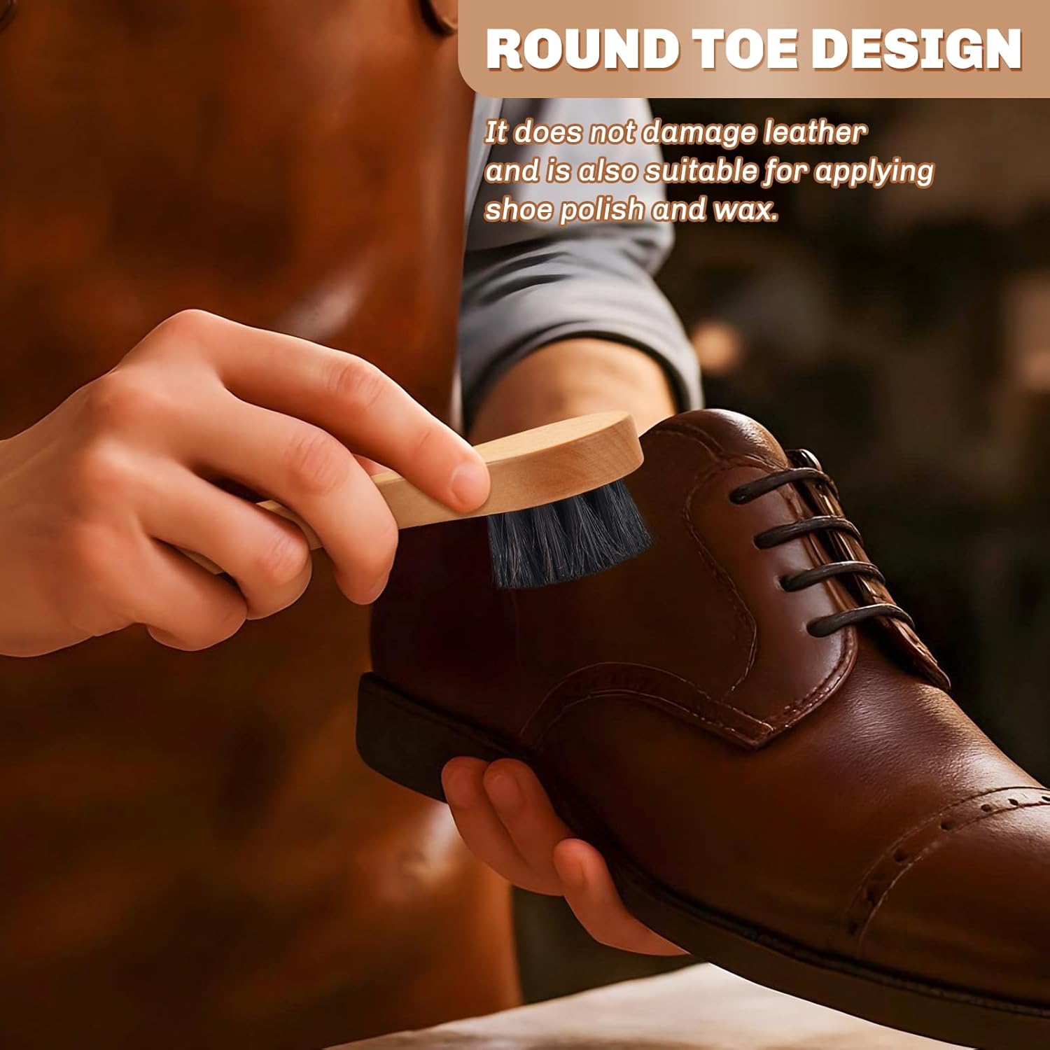 4 Pcs Horsehair Shine Shoes Brush Kit Polish Dauber Applicators Cleaning Leather Shoes Boots Care Brushes Suede Cleaner Brush with Microfiber Shoe Cloth(Wooden Handle B)