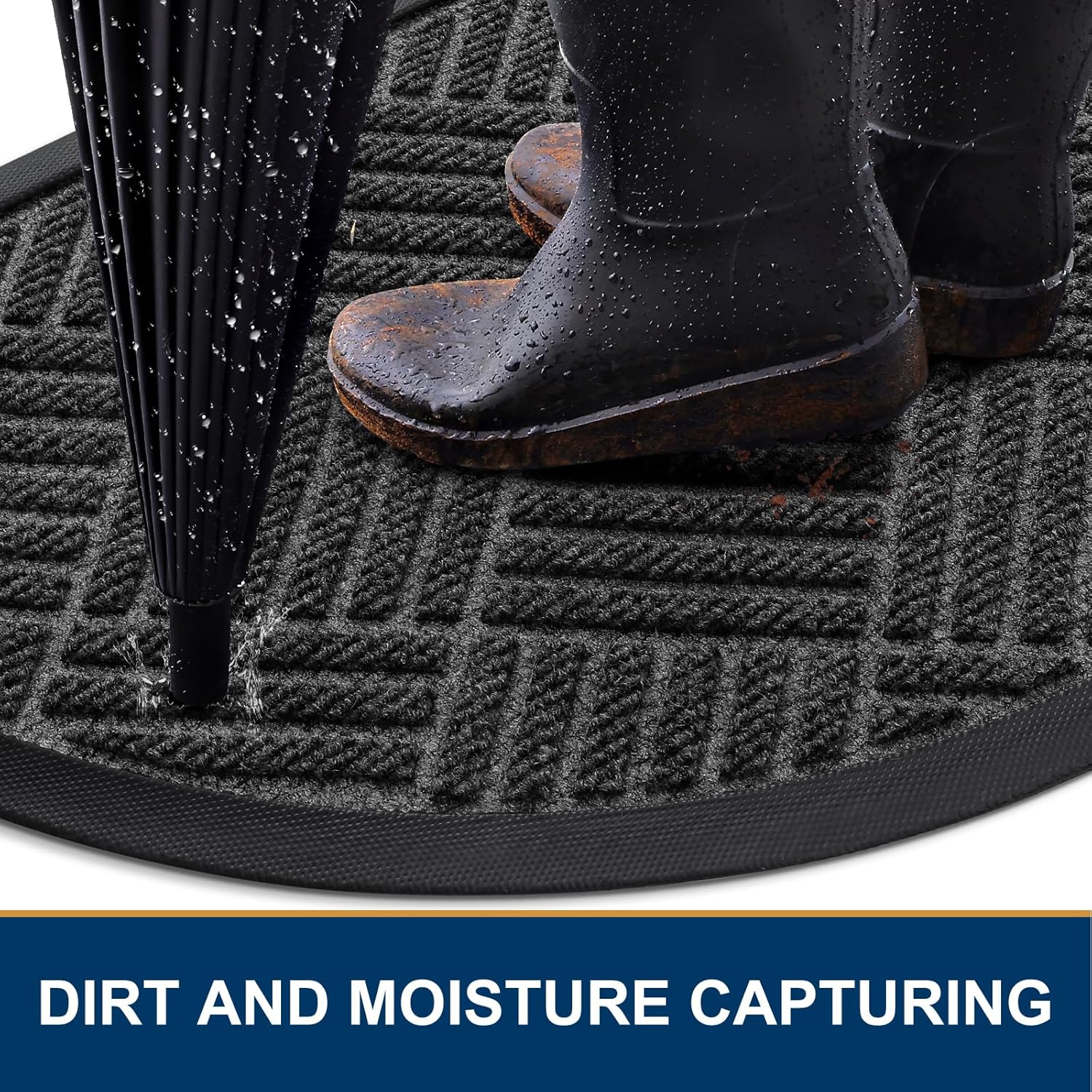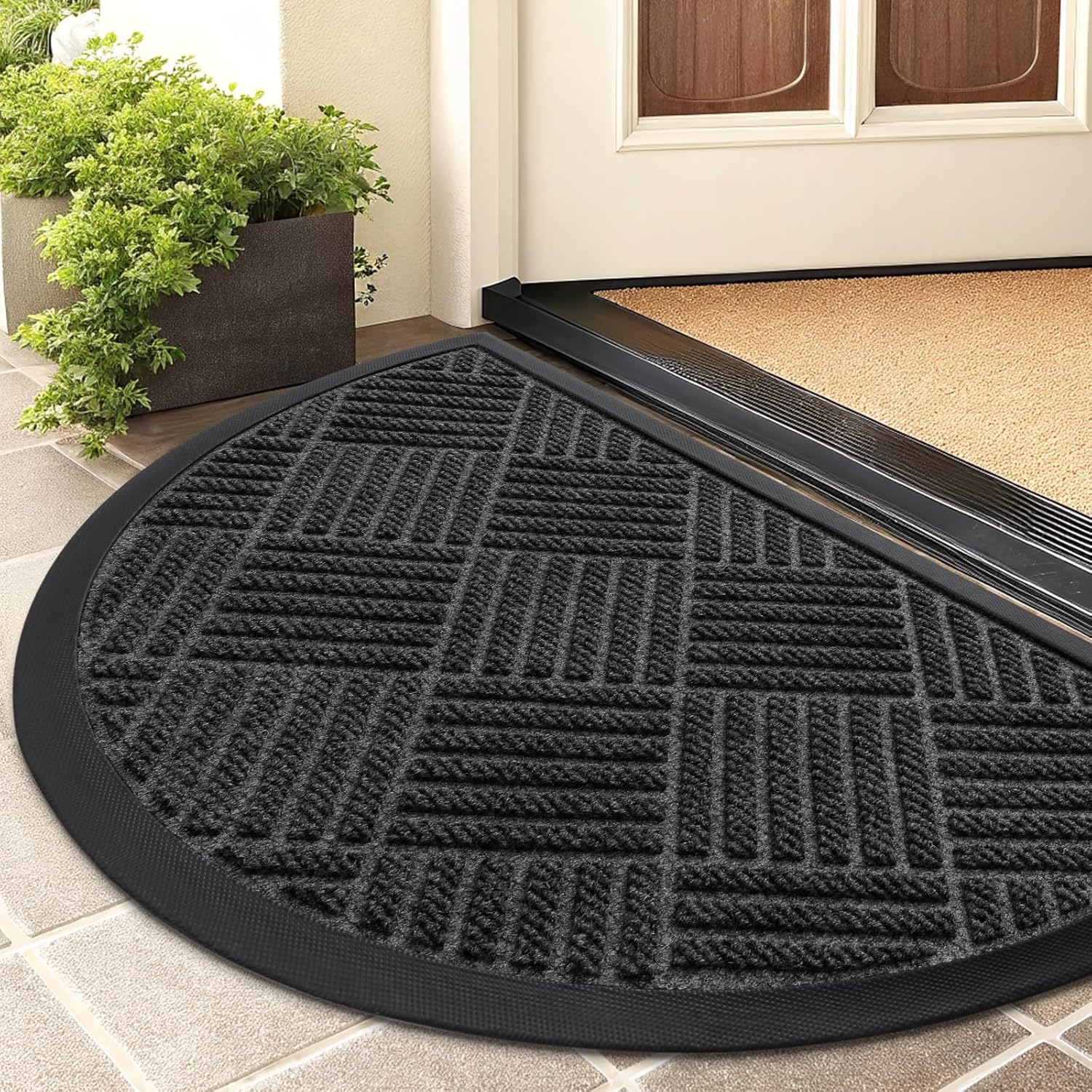 Smiry Half Circle Front Door Mat Outside Entrance, Heavy Duty Outdoor Indoor Natural Rubber Doormat, Non Slip, Trap Dirt and Moisture, Easy Clean, Low Profile Patio Porch Entryway Mat, 29.5x17, Black