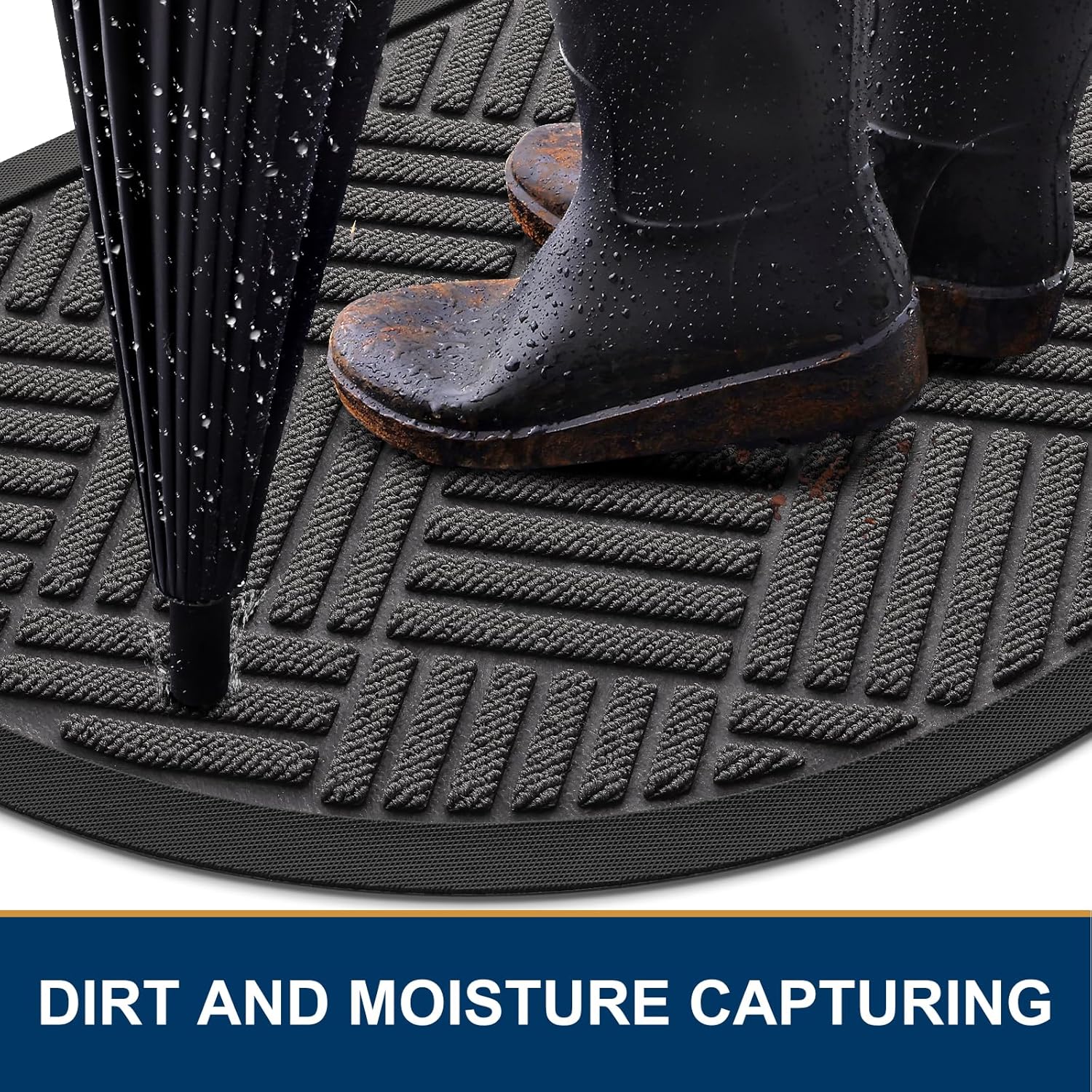 Smiry Half Circle Front Door Mat Outside Entrance, Heavy Duty Outdoor Indoor Natural Rubber Doormat, Non Slip, Trap Dirt and Moisture, Easy Clean, Low Profile Patio Porch Entryway Mat, 29.5x17, Grey