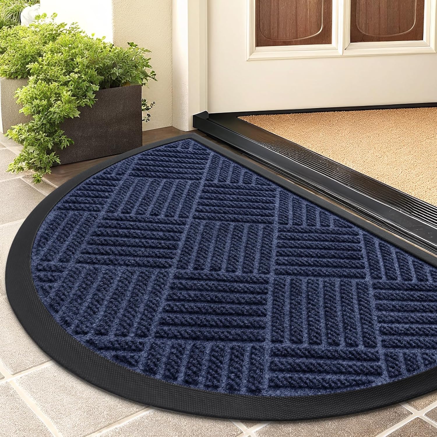 Smiry Half Circle Front Door Mat Outside Entrance, Heavy Duty Outdoor Indoor Natural Rubber Doormat, Non Slip Trap Dirt and Moisture Easy Clean Low Profile Patio Porch Entryway Mat, 29.5x17, Navy Blue