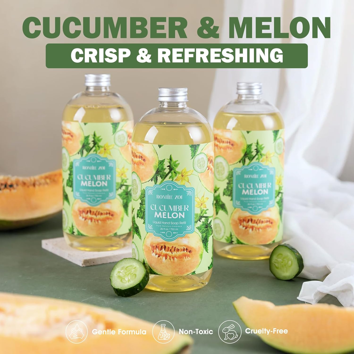 ROMIIE ZOI Liquid Hand Soap Refills Gift Set – Cucumber & Melon Scent – 3 x 26 Fl Oz Bottles – Plant-Based, Non-Toxic, Eco-Friendly & Moisturizing Formula – for Bathroom, Kitchen & Home Gifting