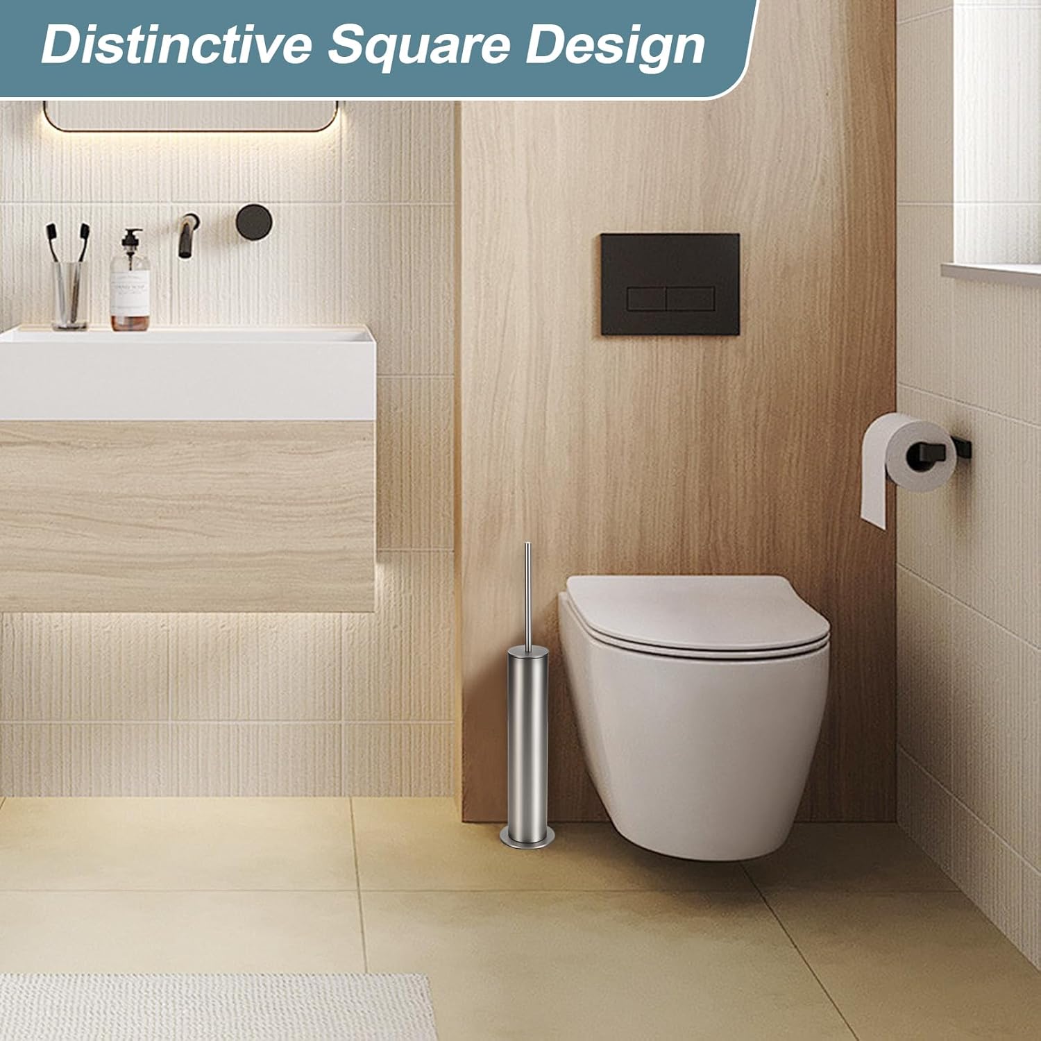 BGL Toilet Brush and Holder Set, Heavy Duty 304 Stainless Steel, Round Base and Long Handle for Bathroom Deep Cleaning, Drip-Proof, Space Saving for Storag, Stainless Steel