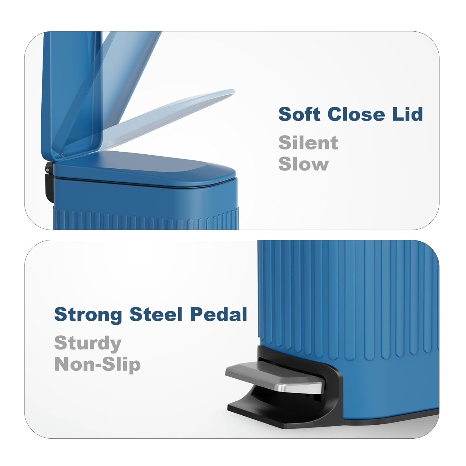 TrashAid Slim Bathroom Trash Can with Lid Soft Close, 6 Liter/1.6 Gallon Stainless Steel Small Garbage Can with Removable Inner Bucket, Step Pedal, Slim Wastebasket for Toilet, Office, Bedroom, Blue
