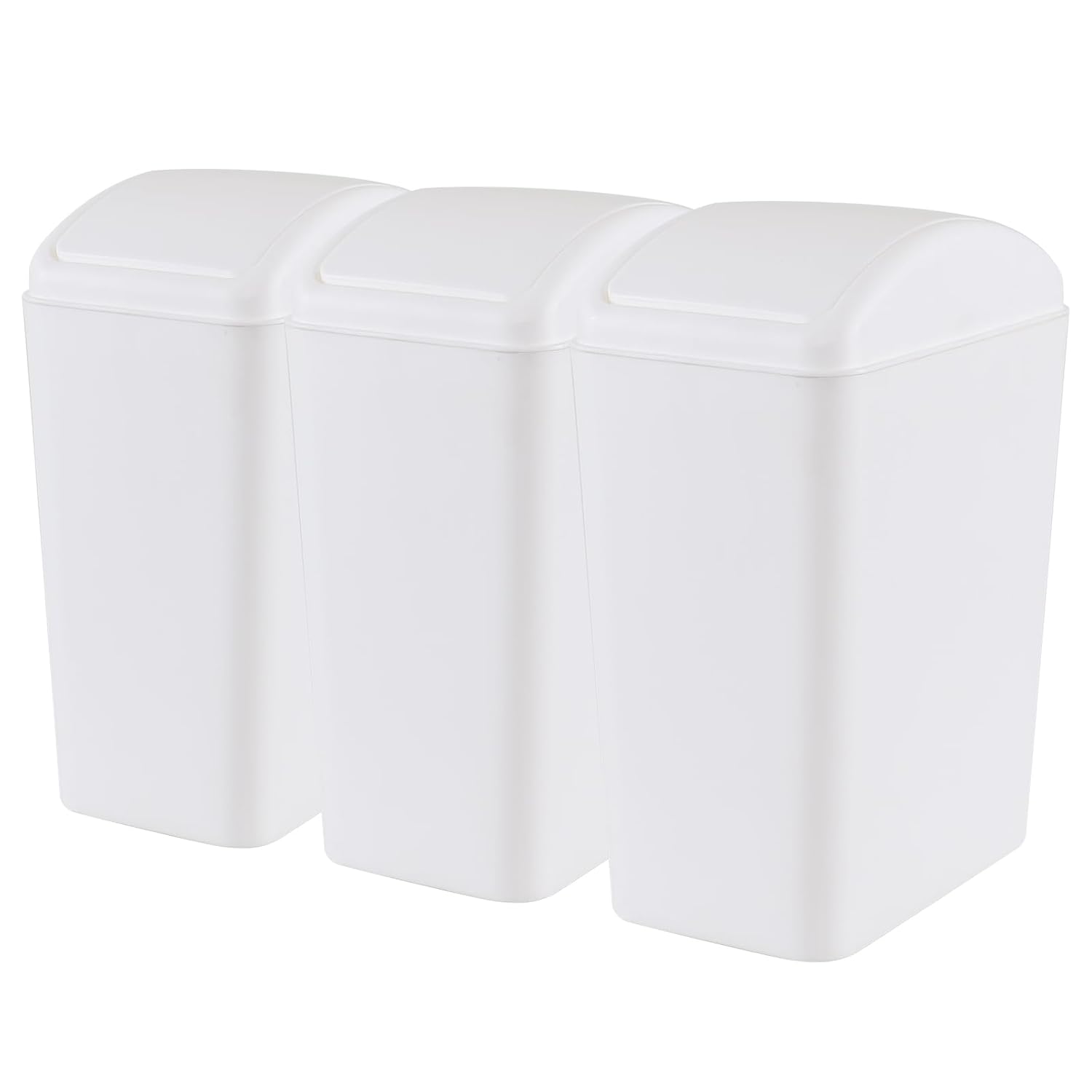 4.5 Gallon Plastic Swing Top Garbage Can, Swing Lid Trash Bins, White, 3-Pack