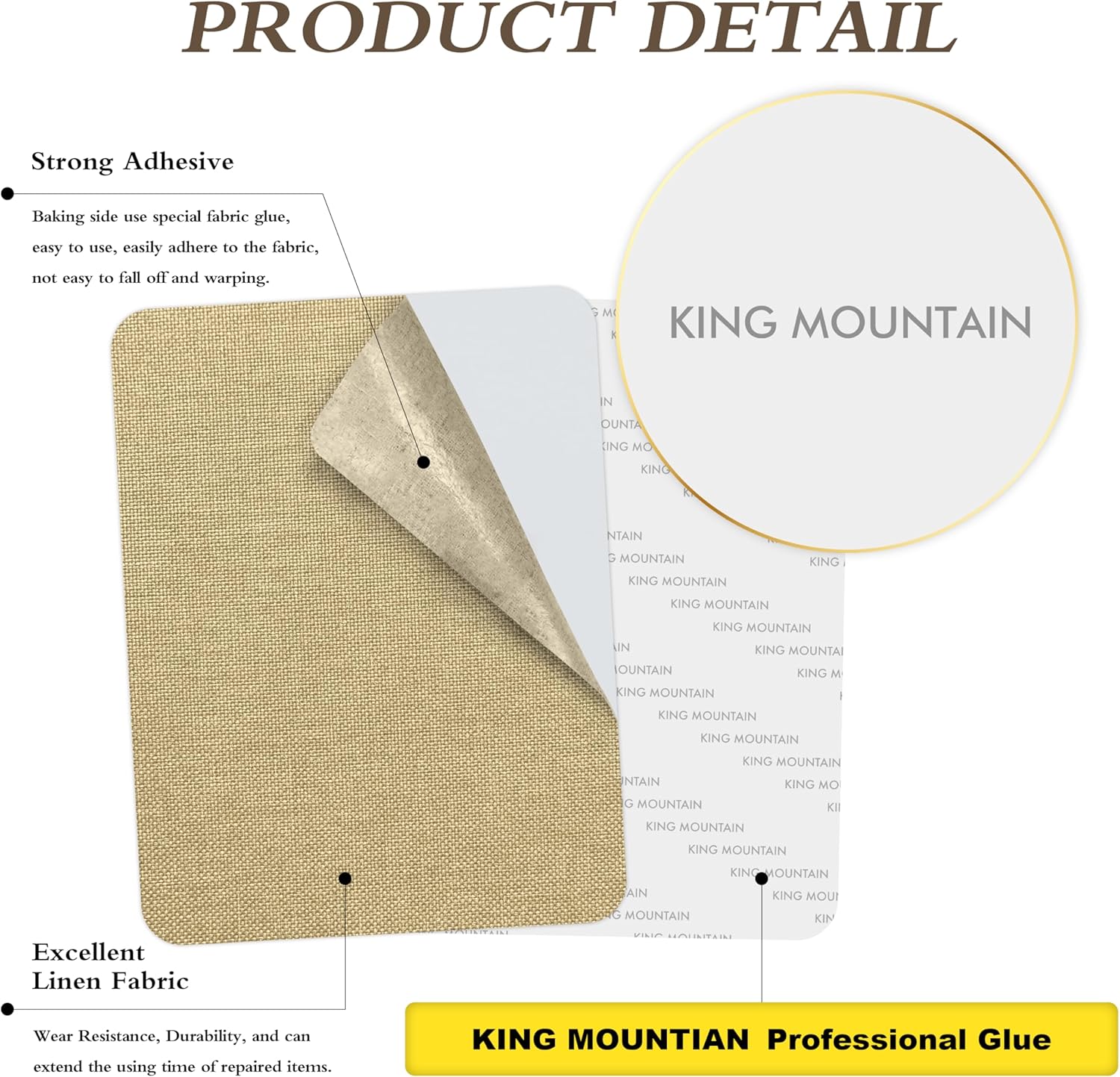 KING MOUNTAIN Coarse Linen Repair Patches, Self-Adhesive Linen Fabric Patches, 8X11 inch 2 PCS, Multi Color, Can be Used for Linen Sofa Repair and Linen Clothes Repair(8" x 11"-2PCS,Khaki)