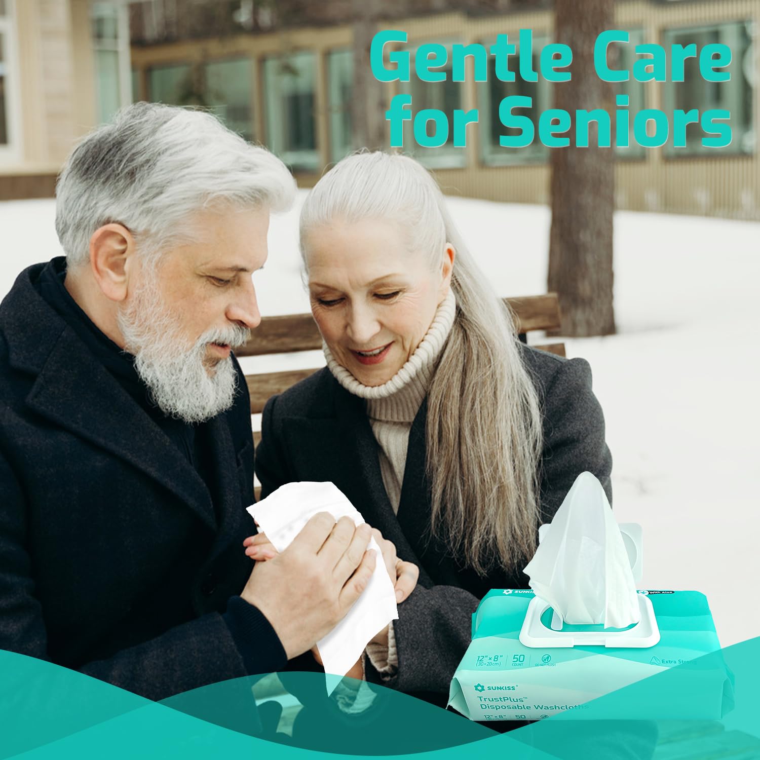SUNKISS Trustplus Wet Wipes for Adult No Rinse, Extra Large 8”x12” Body Cleaning Washcloths for Elderly Incontinence & Cleansing, Unscented, 800 Count (16 Packs of 50)