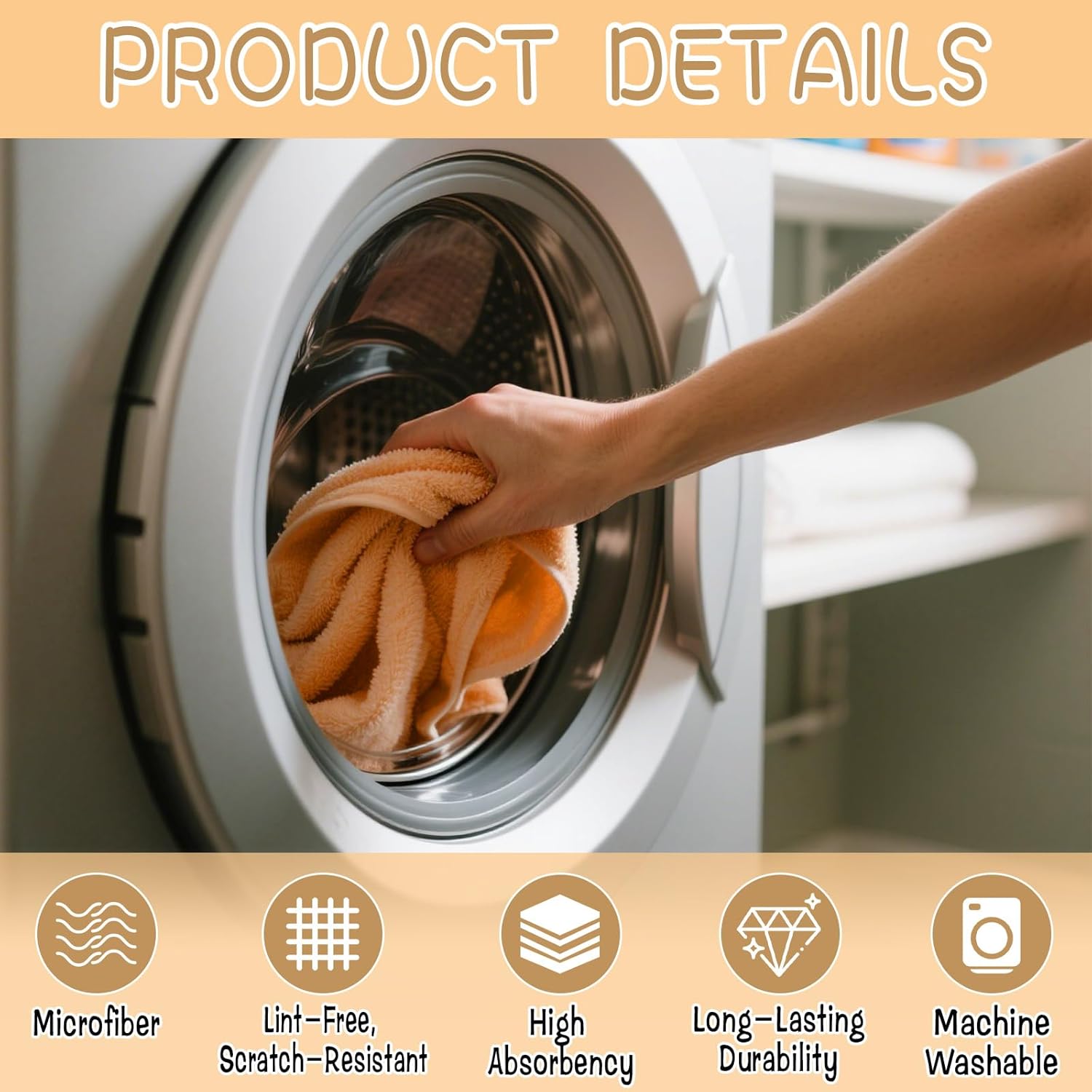 • Reusable & Machine Washable: These microfiber cleaning towels can be washed and reused again and again, helping reduce waste and saving money over time.