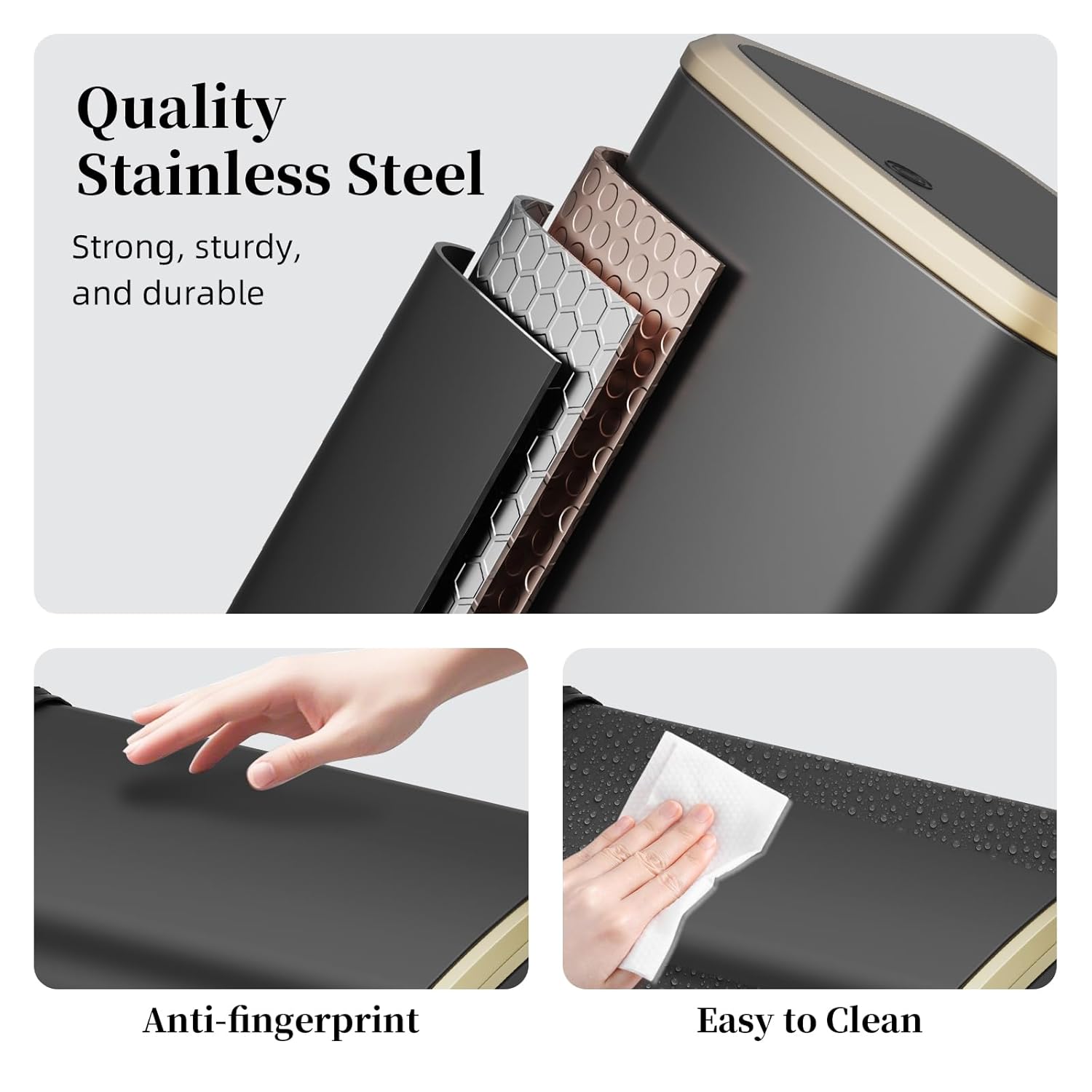 • Stainless Steel Armor & Hassle-Free Cleaning: Premium stainless steel exterior resists water, fingerprints, and corrosion. Seamless inner bucket prevents leaks, while the wipe-clean surface eliminates sticky residue in seconds.