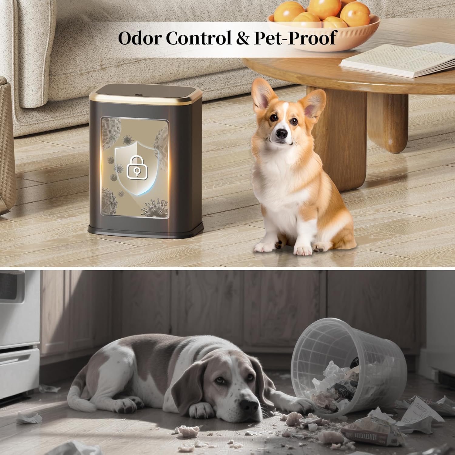 • Odor-Blocking Secure Closure: Snug-fitting lid creates a tight seal when closed, trapping unpleasant smells and preventing your dogs getting into it. Removable inner bucket and trash bag fixing hole allow easy liner replacement, keeping spaces like living rooms and dorm rooms fresh and tidy.