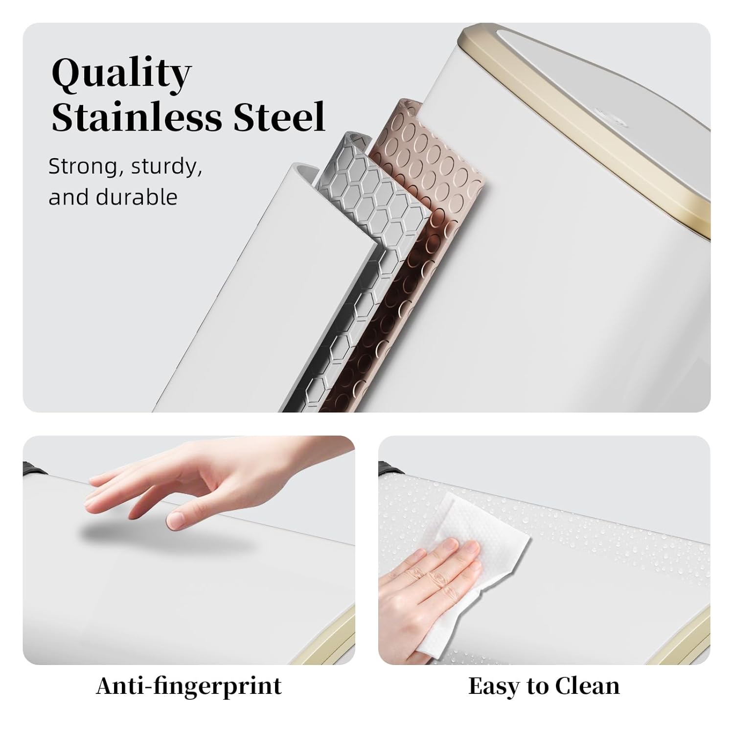 • Stainless Steel Armor & Hassle-Free Cleaning: Premium stainless steel exterior resists water, fingerprints, and corrosion. Seamless inner bucket prevents leaks, while the wipe-clean surface eliminates sticky residue in seconds.