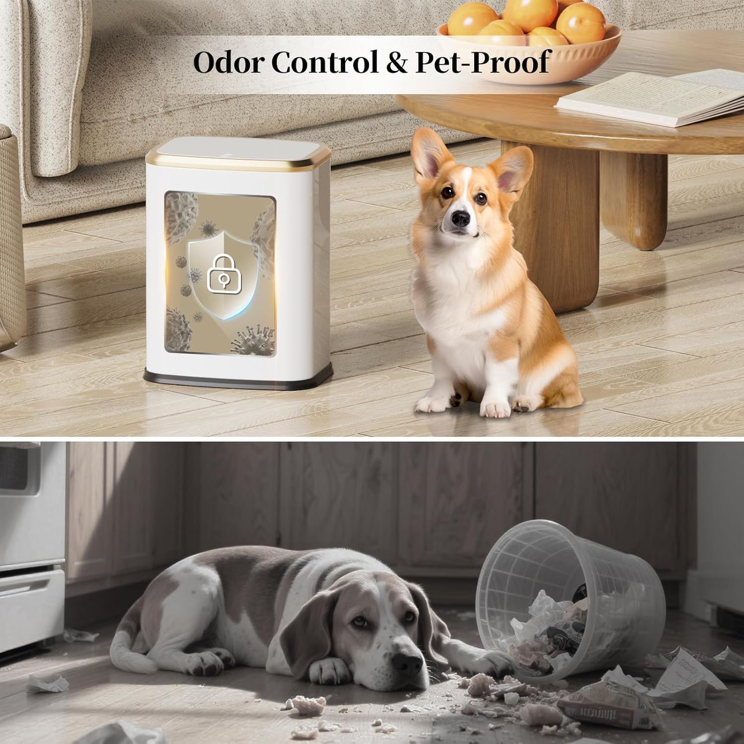 • Odor-Blocking Secure Closure: Snug-fitting lid creates a tight seal when closed, trapping unpleasant smells and preventing your dogs getting into it. Removable inner bucket and trash bag fixing hole allow easy liner replacement, keeping spaces like living rooms and dorm rooms fresh and tidy.