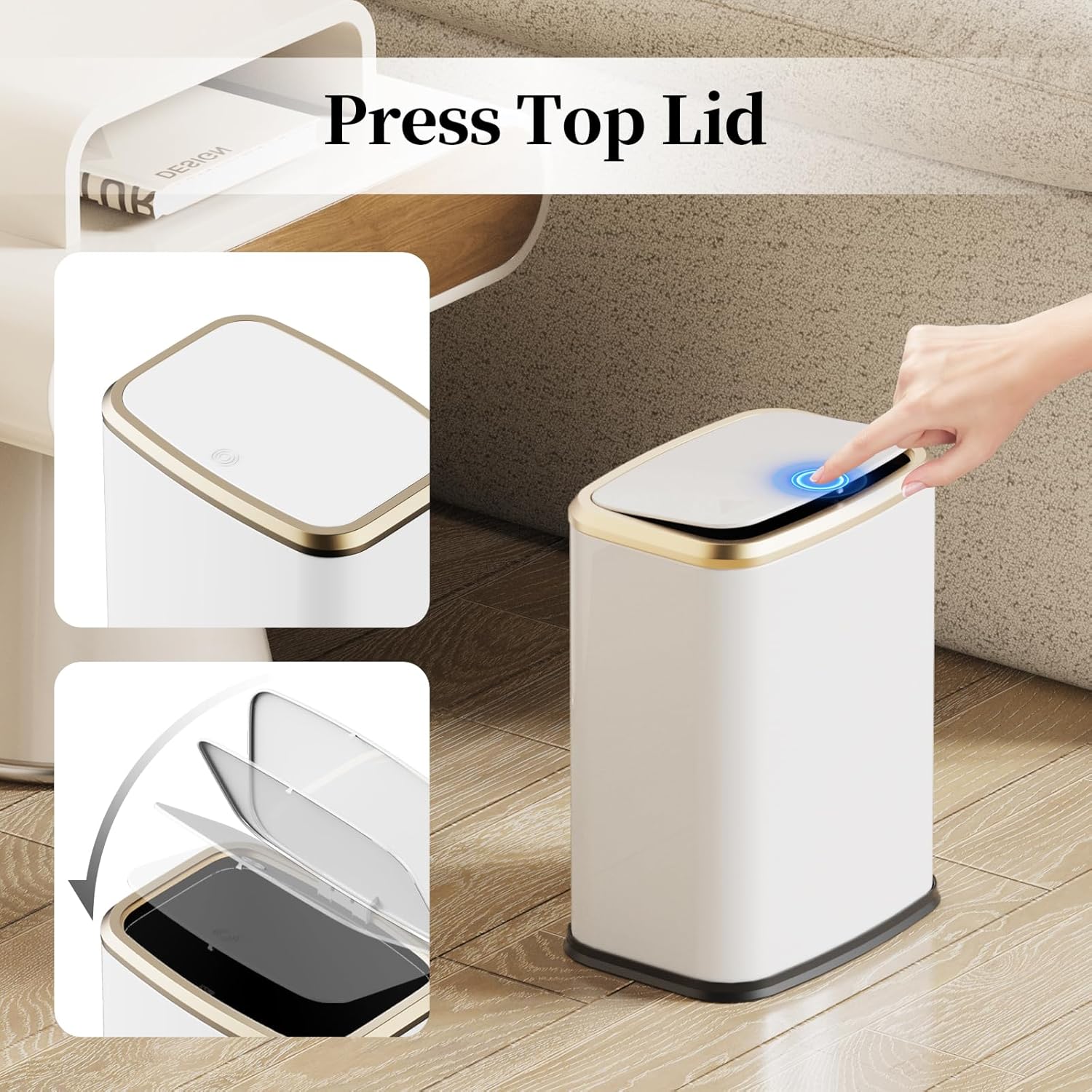• Ultra-Slim Space Optimizer: Measuring only 6.6 inches/16.8cm wide, this 2.1-gallon trash can tucks neatly behind toilets, under desks, or in tight kitchen corners, improving your space utilization. Compact yet functional design holds standard 4-8L garbage bags perfectly.