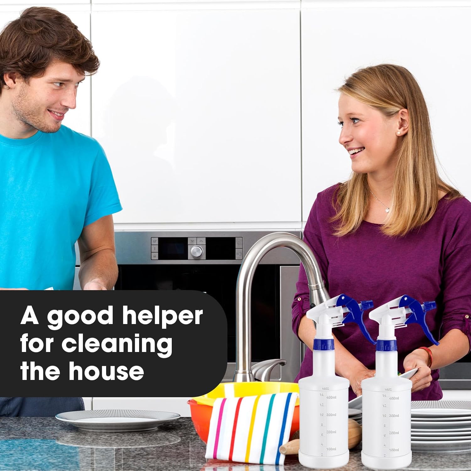 Eccliy 12 Pcs 16 Oz Plastic Spray Bottle, Adjustable Empty Reusable Sprayer for Cleaning, Planting, Water, Bathroom and Kitchen, BBQ, Commercial and Residential(Blue & White,Measurement)