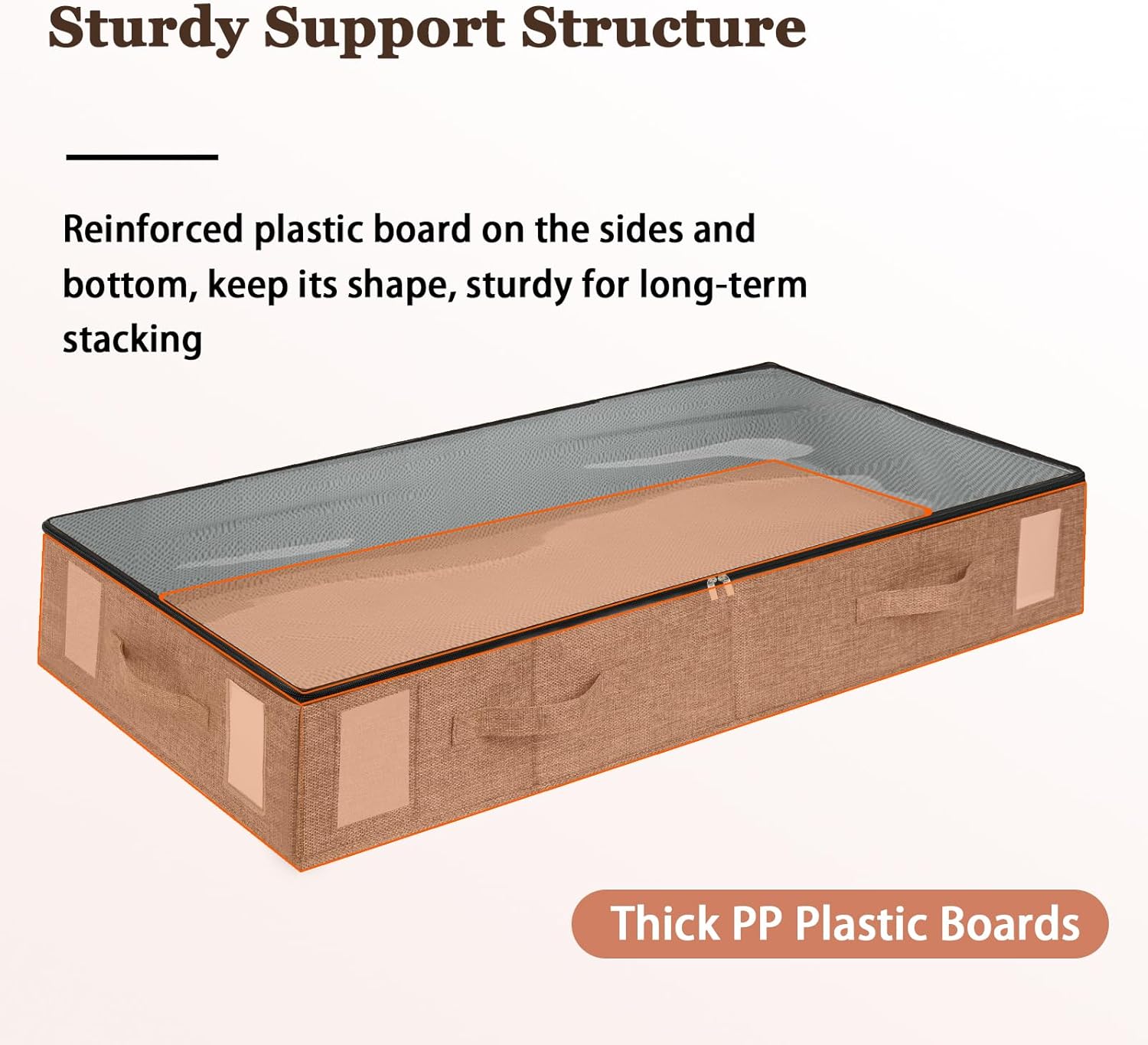• Sturdy Support Structure: Reinforced plastic board on the sides and bottom (not flimsy cardboard) , our under bed storage bins keep its shape and easy stacking, sturdy for long-term use