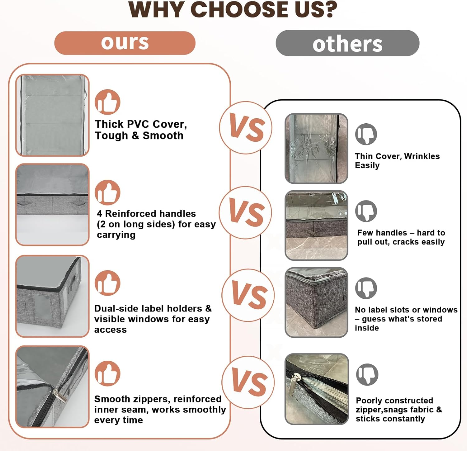 • Easy Access&View: Large clear top window allows you to to see what’s inside easily; the label holders with blank cards on two sides for your mark, two visible windows help you identify the contents more quickly. 4 reinforced handles make it easy to carry and pull out from under the bed. Double strong metal zippers making for smooth and easy open and close