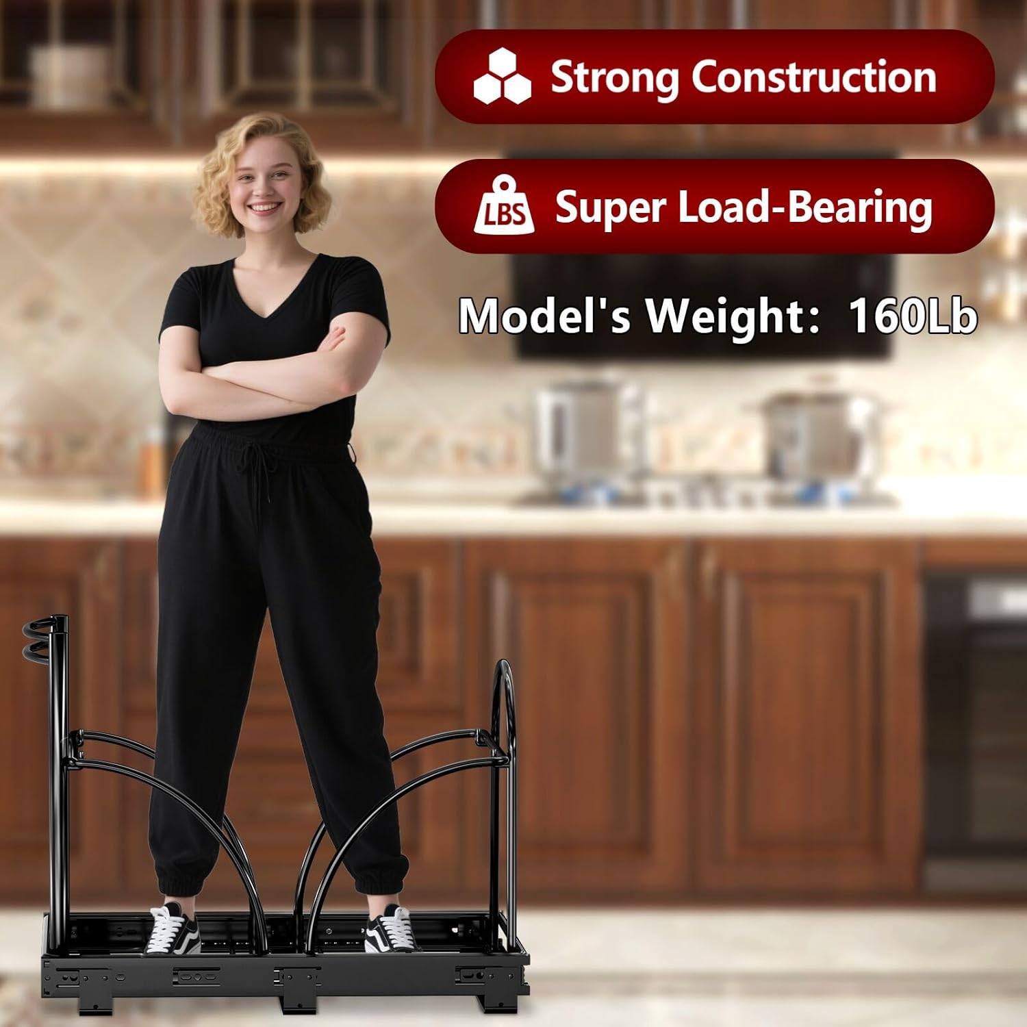 Dual Under Sink Trash Can Heavy Duty Pull Out Trash Can Under Cabinet, Fits 2x35Qt (7-9 Gal) Commercial Trash Cans Cabinet Trash Bin Pull Out Kit Requires ≥ 22''Dx 16''Wx 17''H, No Can (Black)