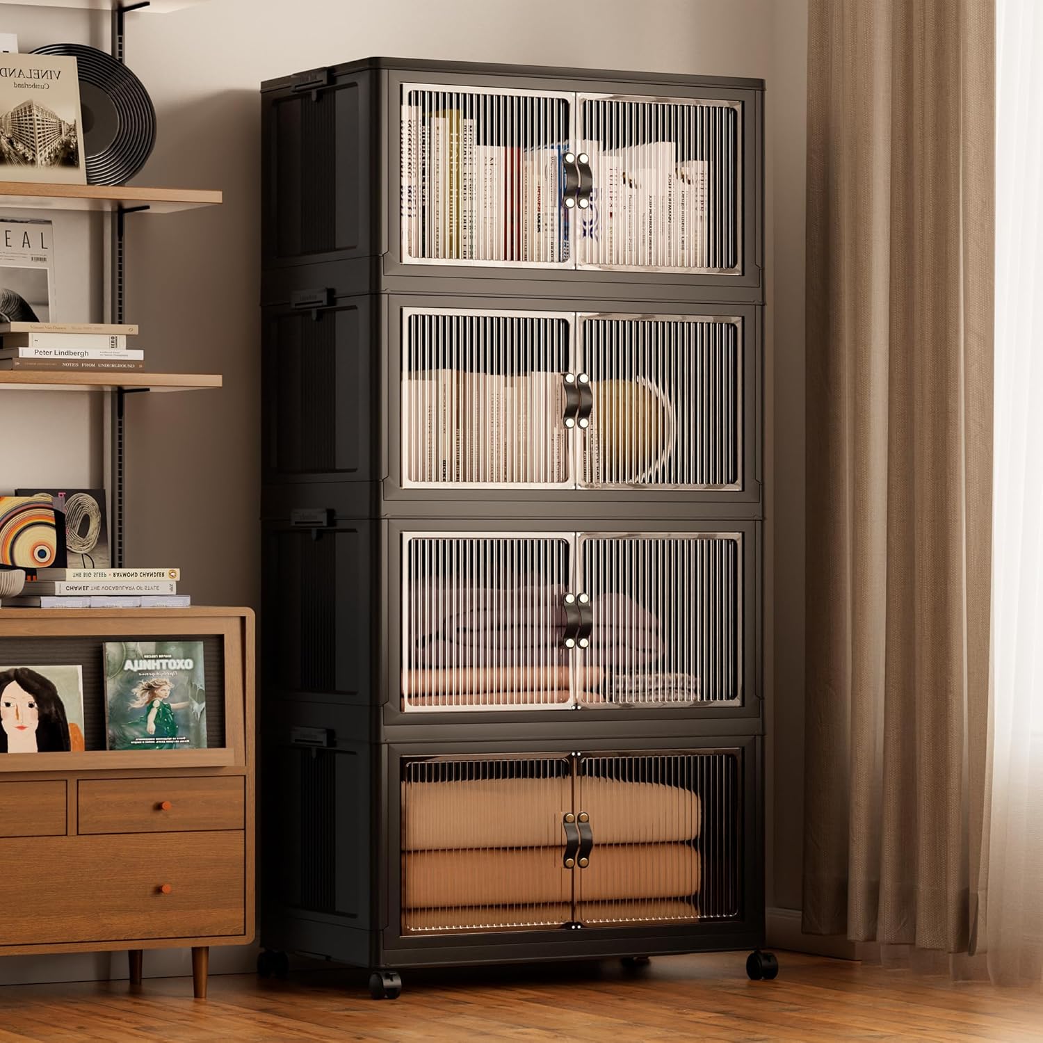 • 【High Quality & Safety】Made with high-impact polypropylene (PP), these bins ensure durability and protection for your belongings. The ABS front panel adds clarity and strength. They can also be used as a plastic storage cabinet with doors, offering more convenience for organizing items.