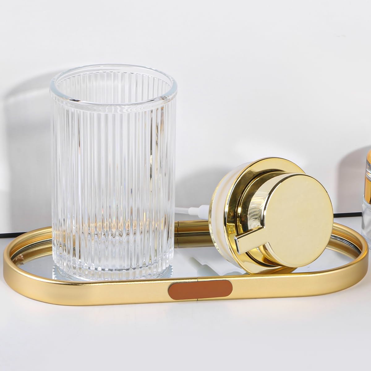 Clear Foaming Soap Dispenser, 12 Oz Glass Foaming Hand Soap Dispenser with Gold Pump, Bathroom Refillable Liquid Lotion Container Pump Ribbed Bottle for Kitchen Bathroom Decor, 1pc