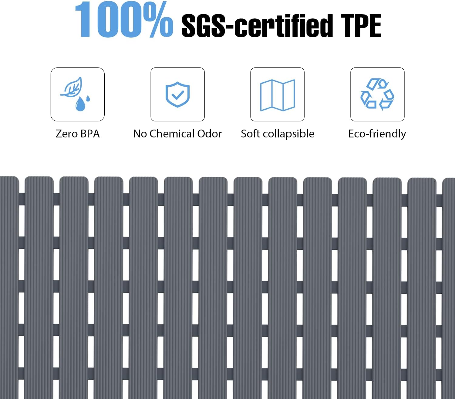 • Eco-Certified Bathtub Mat Material: This non-slip bath mat for shower/tub is crafted with 100% SGS-certified TPE (Test Report NO.CANEC25008026405), featuring Zero BPA & Chemical Odor,trusted by 12,000+ Families for Baby Bath Time Safety.