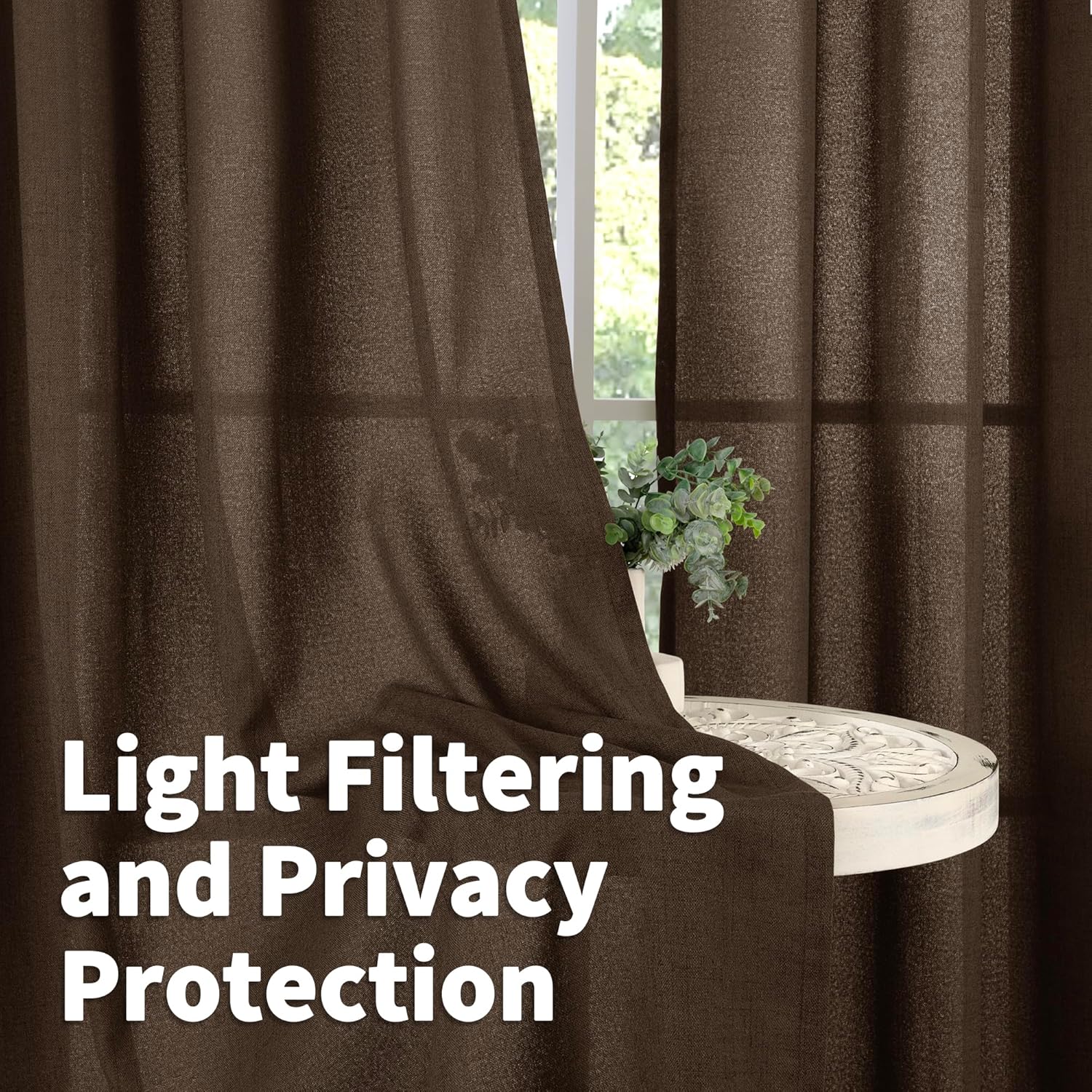 • Privacy Protection: Different from ordinary sheer drapes, our linen curtains are woven with a firmer and thicker texture that filters harsh light, while nice thickness helps provide privacy. Subtly balancing light and privacy that allow you to enjoy your leisure time.