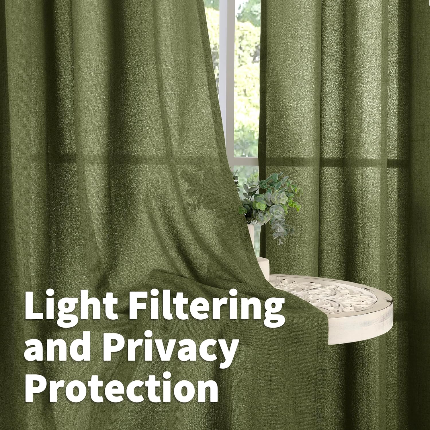 YoungsTex Olive Green Linen Curtains 78 Inch Length for Living Room, Light Filtering Semi Sheer Window Drapes with Rod Pocket Back Tab for Office Dining Bedroom, 2 Panels, 52 X 78 Inch