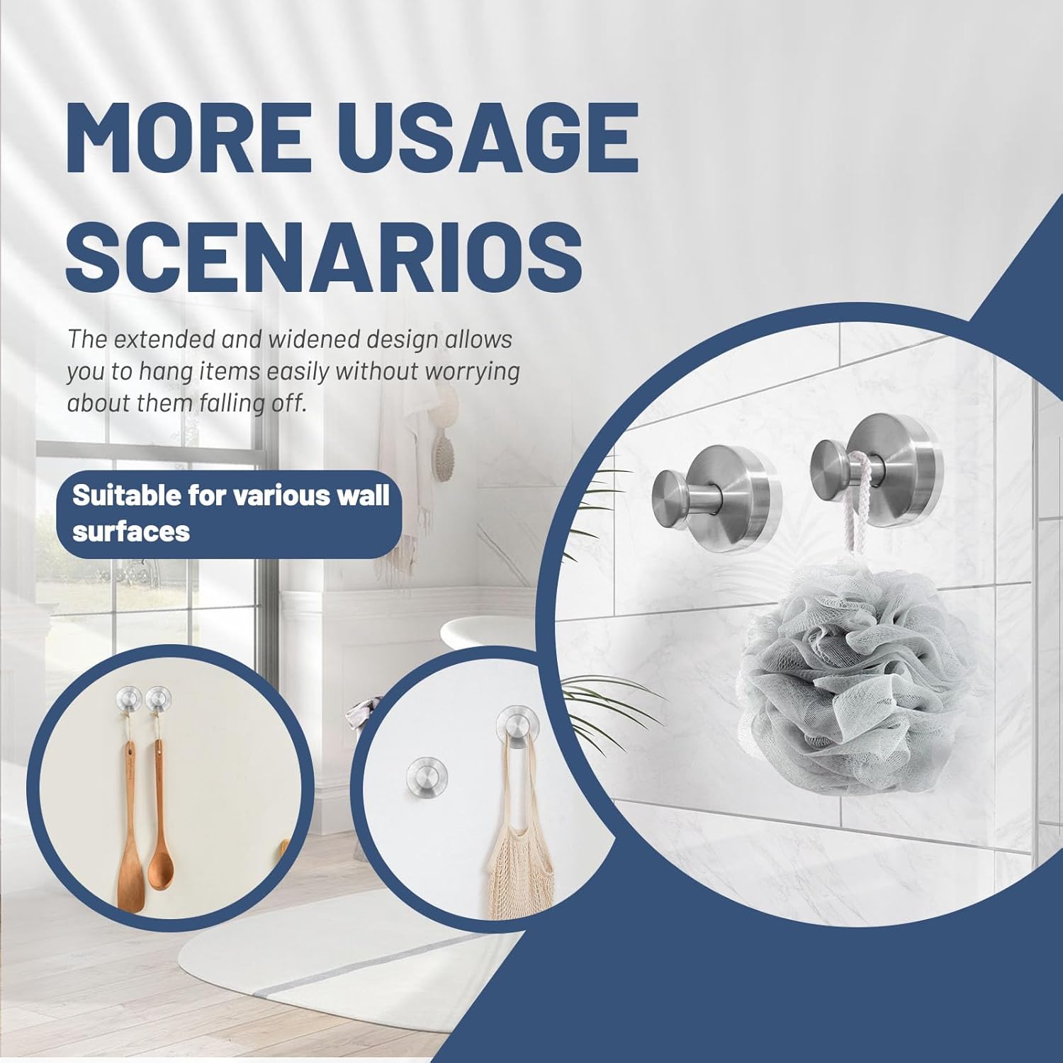 • 【Versatile Use Across Multiple Spaces】 Perfect for hanging towels, bath accessories, clothes, and more. Works reliably on glass, mirrors, tiles, and other smooth surfaces both inside and outside the shower, helping you create an organized, clutter-free environment wherever you need it