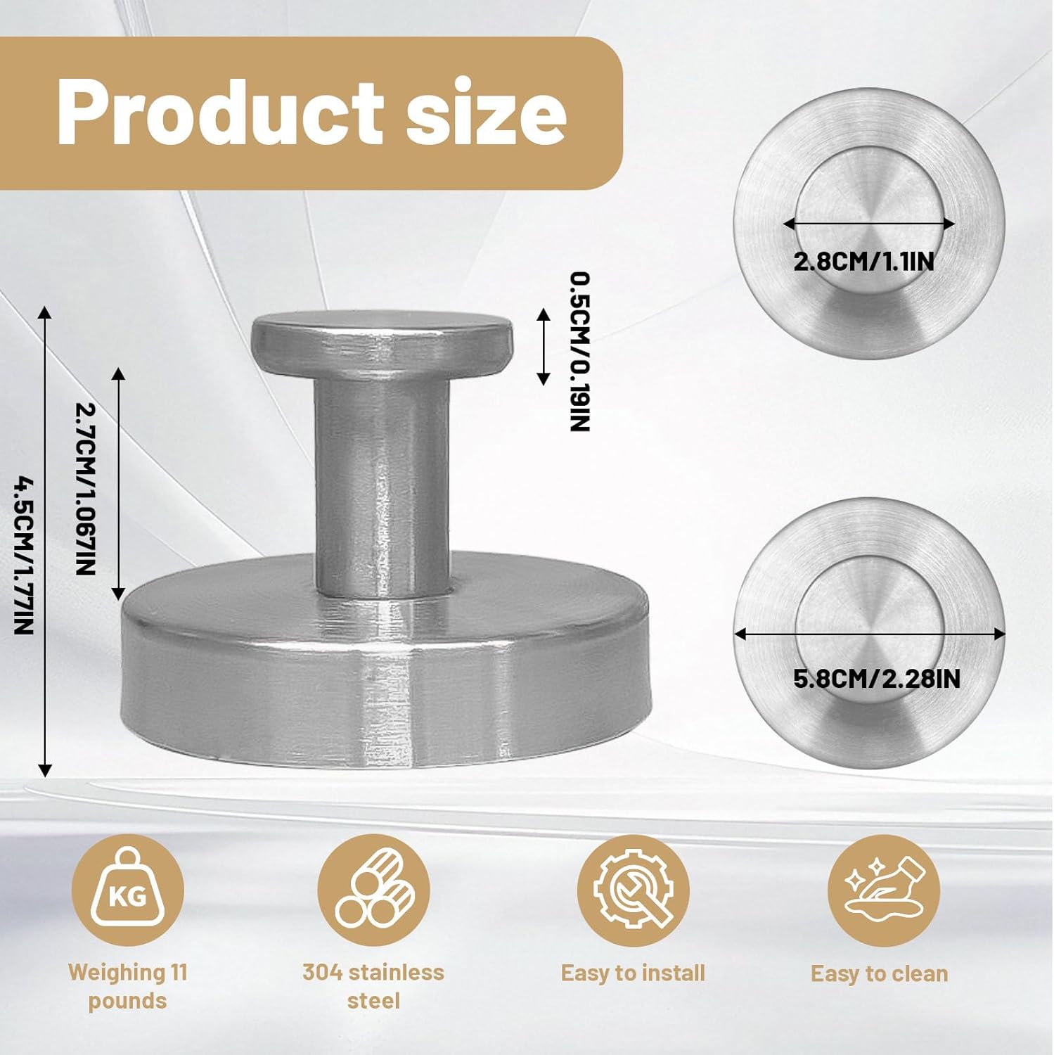 • 【Sleek and Space-Saving Design】 With a compact 5.5 cm size, this elegant hook not only saves space but also adds a modern touch to any room. Ideal for bathrooms, bedrooms, kitchens, or offices, it complements various decor styles while keeping your belongings tidy.