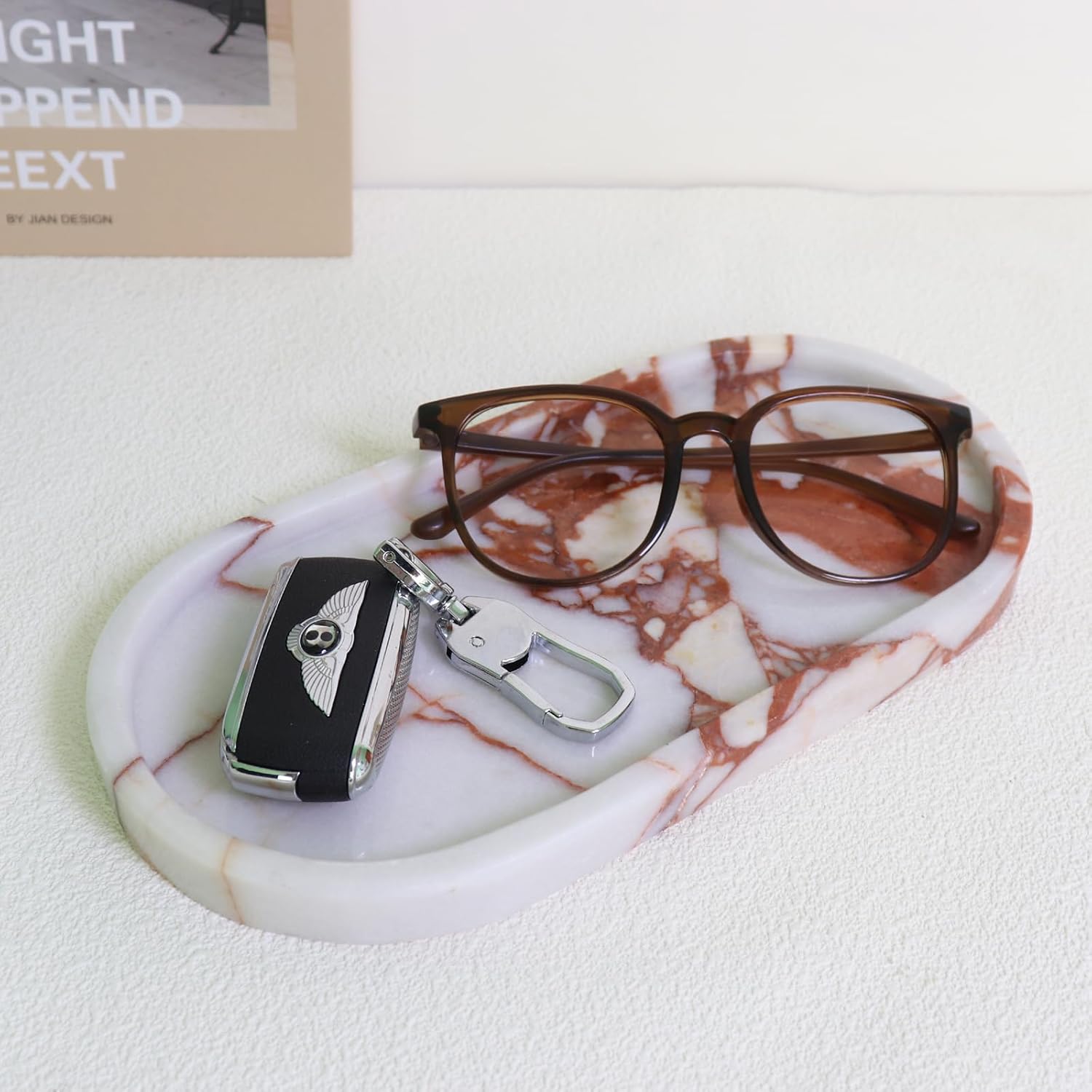 • Vanity tray 12 x 5 inches is suitable for various scenarios.It is the perfect size to place on a bathroom vanity to store hand soap, toiletries and hand towels. Because it is natural marble, the texture of each stone is different and the pattern on the tray you buy will be different from the picture