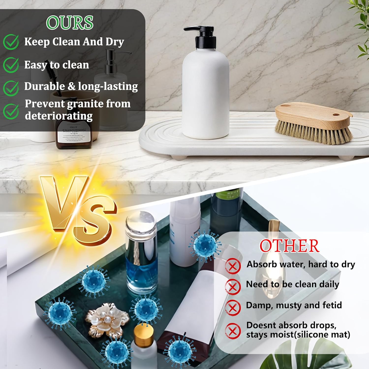 • LIGHTNING-FAST DRYING POWER - This Instant Dry Sink Caddy Organizer eliminates moisture in 60 seconds, thanks to its ultra-absorbent design. Say goodbye to puddles and water spots on countertops—it keeps kitchens and bathrooms instantly tidy and dry.