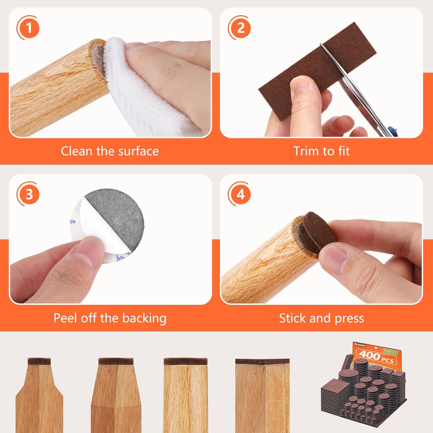 Felt Furniture Pads 400 Pieces, Furniture Pads for Hardwood Floors, Floor Protectors for Furniture Legs, Felt Pads for Furniture, Many Large Sizes Brown
