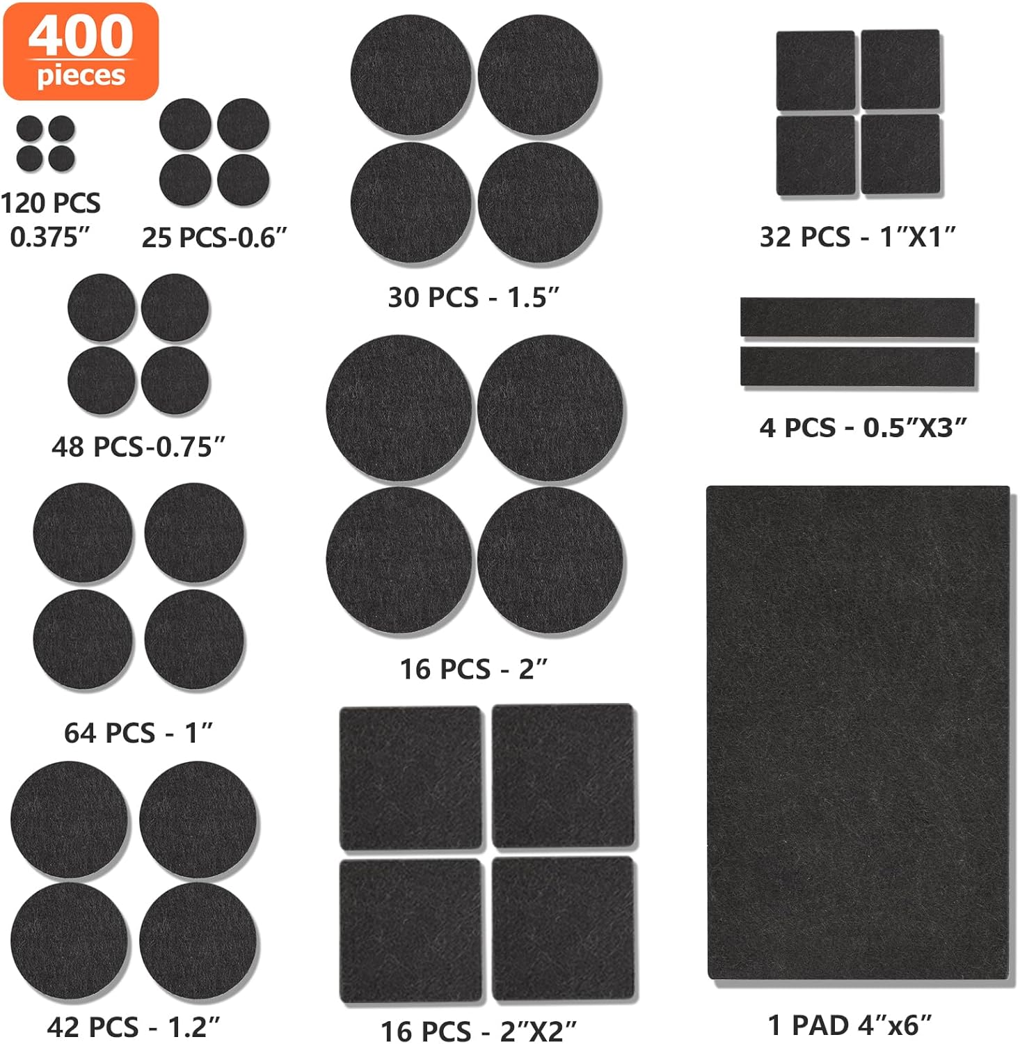 Felt Furniture Pads 400 Pieces, Furniture Pads for Hardwood Floors, Floor Protectors for Furniture Legs, Felt Pads for Furniture, Many Large Sizes Black