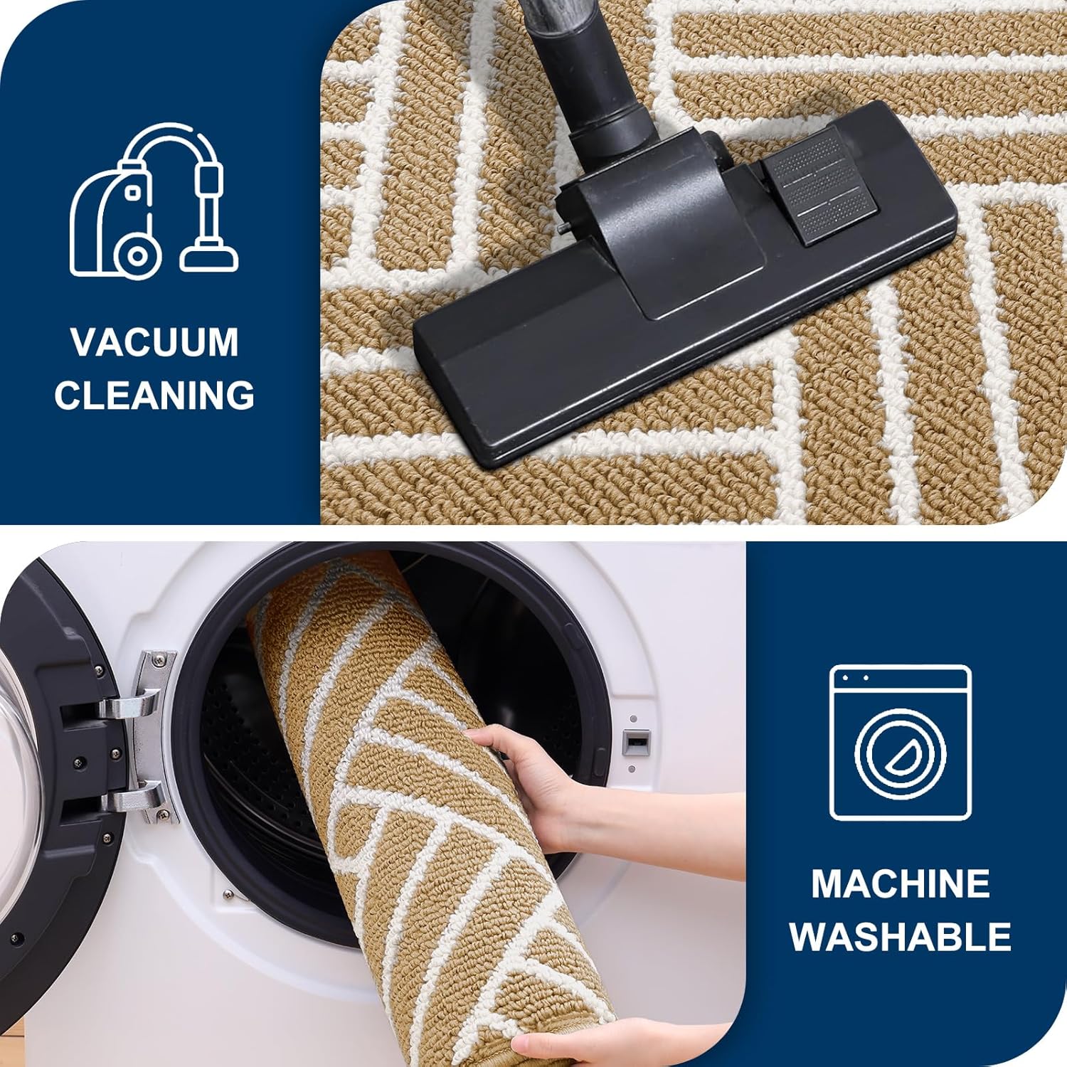 • [EASY CLEANING AND MAINTENANCE]: Cleaning the indoor entrance mat is simple and hassle-free. Easily shake off dirt, or use a broom or vacuum for regular cleaning. For a deeper clean, simply rinse it with a hose or machine wash with cold water.