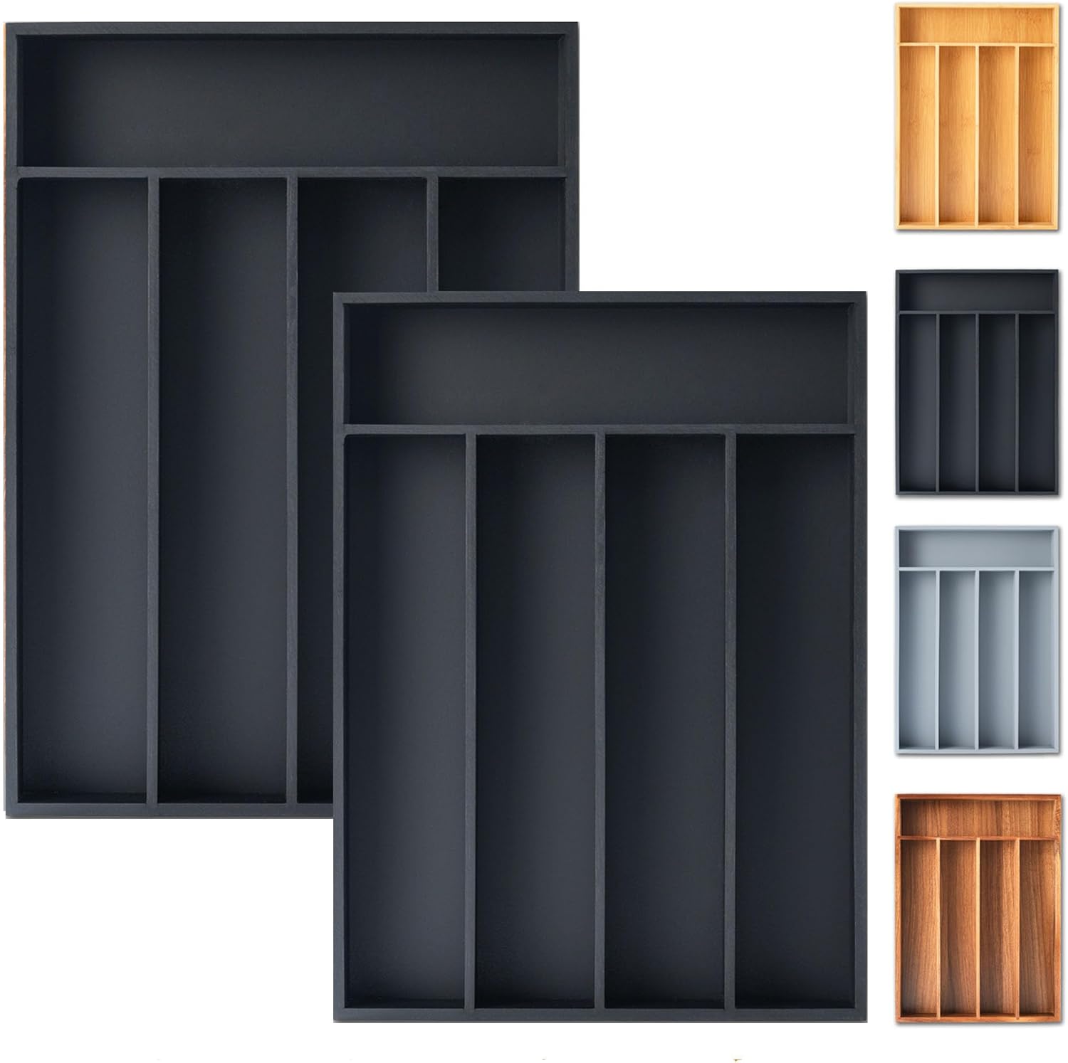 Silverware Organizer, 2 Pack 10 Inch Utensil Organizer Kitchen Drawer Organizer Bamboo Silverware Holder Cutlery Tray Organizer in Drawer Flatware Organizer Tray(5 slots, Black)