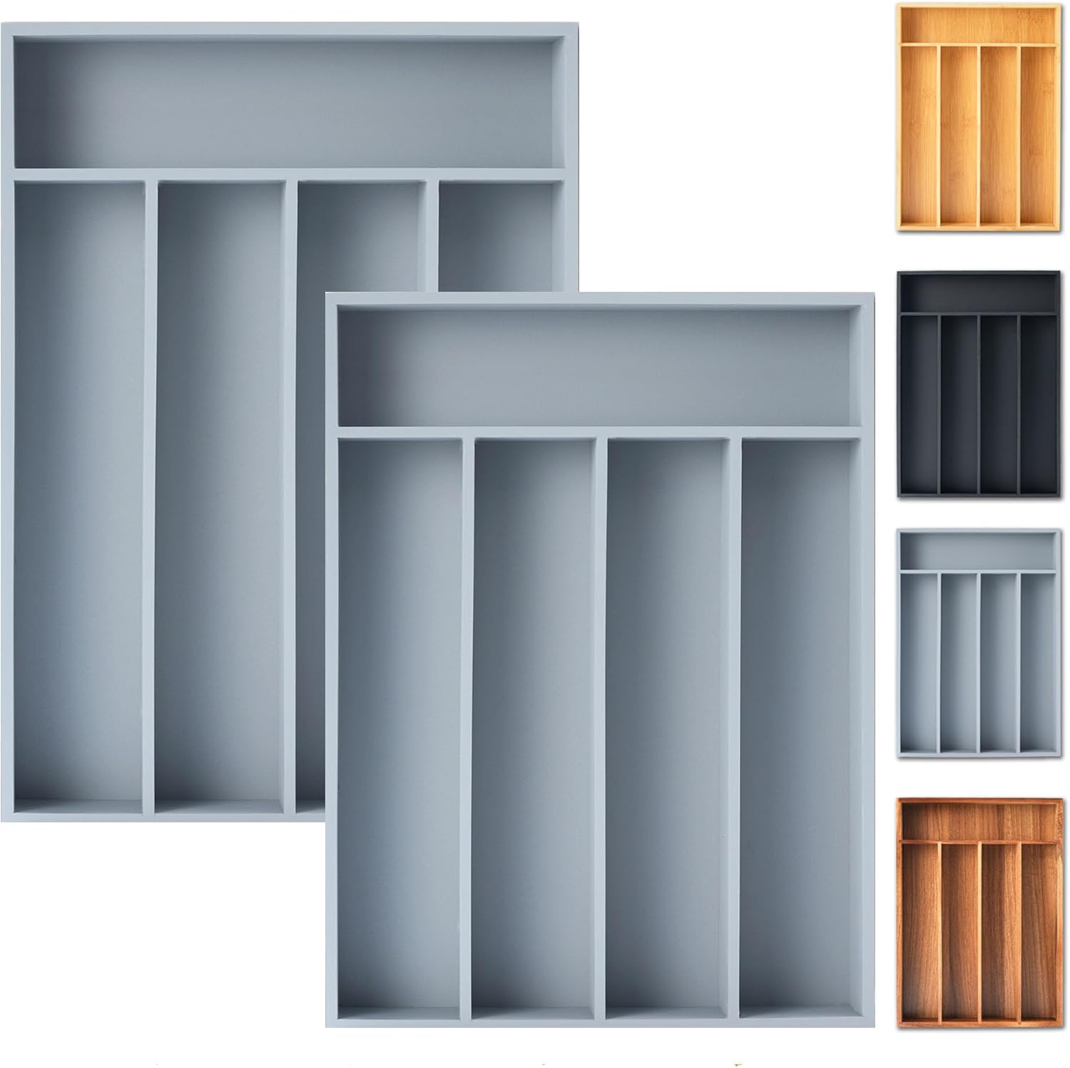 Silverware Organizer, 2 Pack 10 Inch Utensil Organizer Kitchen Drawer Organizer Bamboo Silverware Holder Cutlery Tray Organizer in Drawer Flatware Organizer Tray(5 slots, Gray)