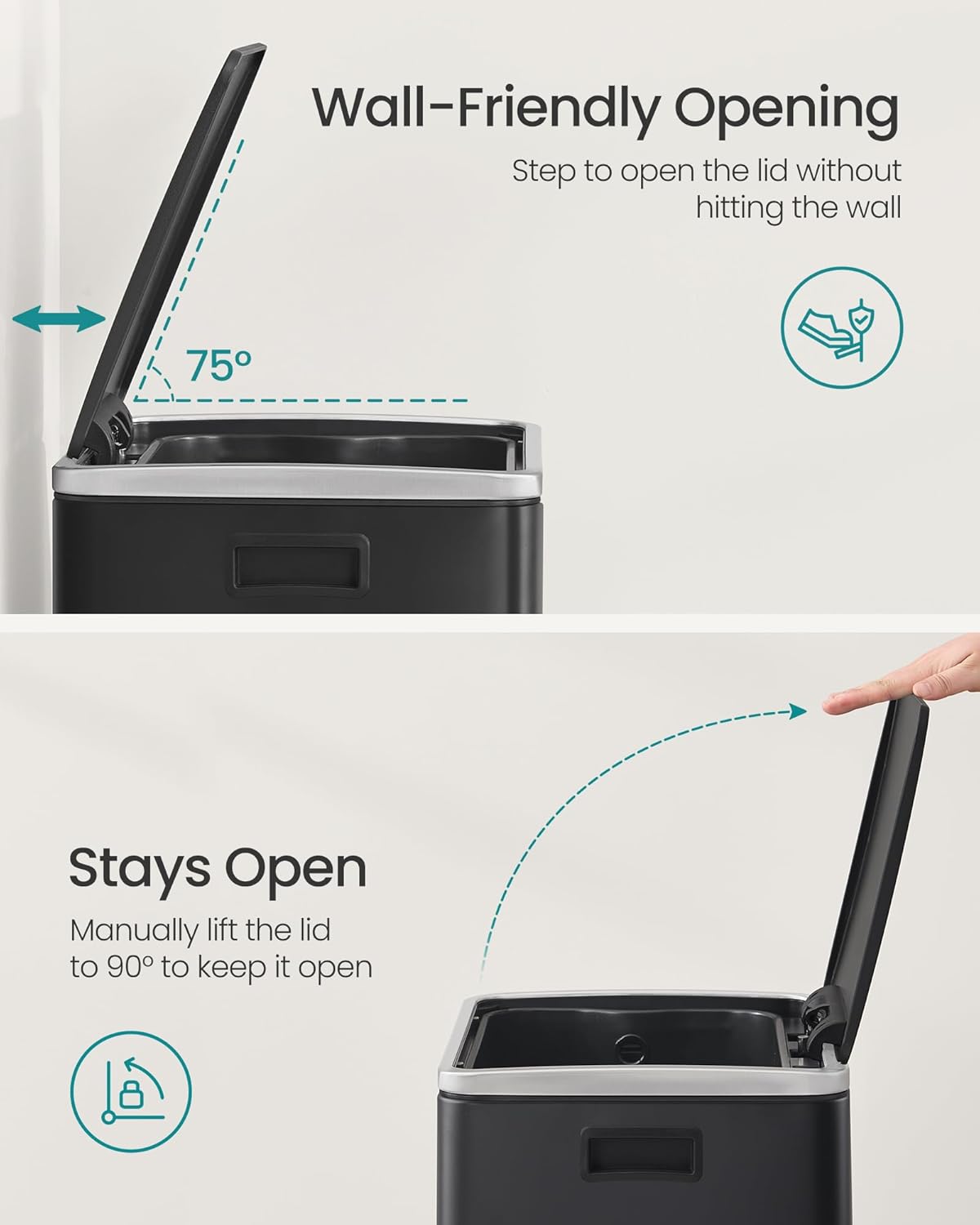 • Easy to Empty: The inner bucket, equipped with 2 side handles, simplifies emptying and cleaning, making the daily upkeep of your garbage can more convenient