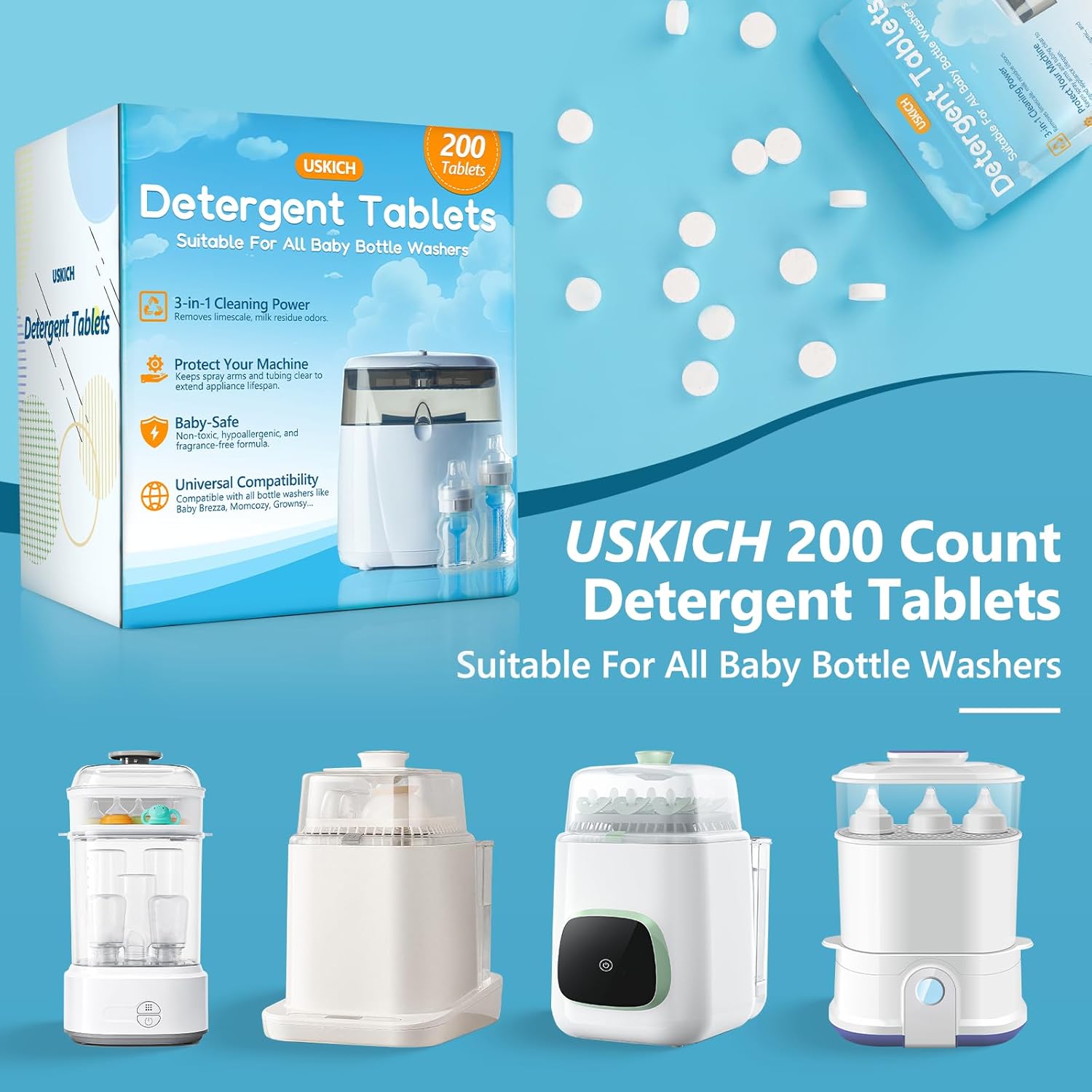 200Pcs Detergent Washing Tablets for Momcozy,Deep Cleaning Baby Brezza Bottle Washer,Compatible with All Brands Baby Bottle Washers