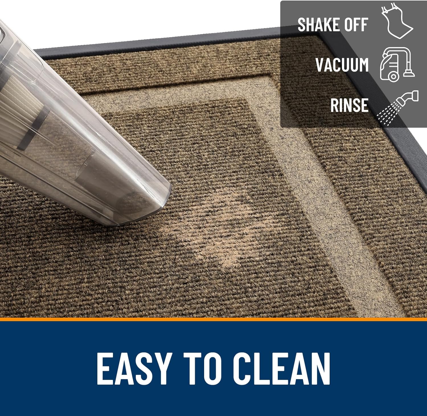 • [EASY TO CLEAN] The OLANLY front door mat is designed for quick and effective cleaning using a vacuum or traditional broom cleaning methods. Additionally, tapping and shaking the back of the doormat helps remove residual debris. For a deeper clean, rinse it with a garden hose and hang the mat in a ventilated place or dry it in a dryer. This versatile cleaning method ensures that your doormat stays clean and tidy, ready to welcome guests.