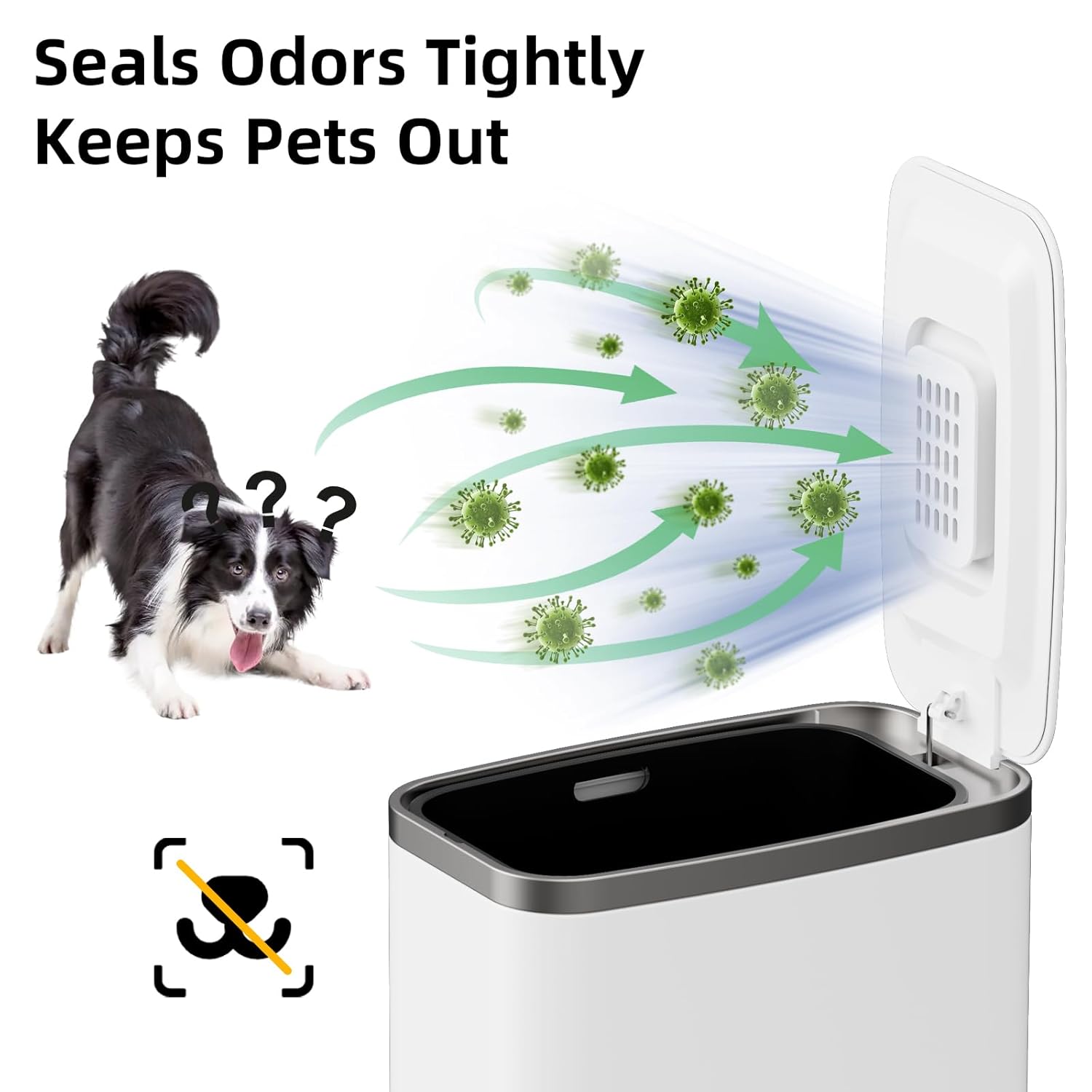 • Waterproof & Easy to Clean-Stainless steel trash can does not rust and the surface is anti-fingerprint, It can be easily cleaned with a simple wipe, ensuring a fresh and clean appearance.