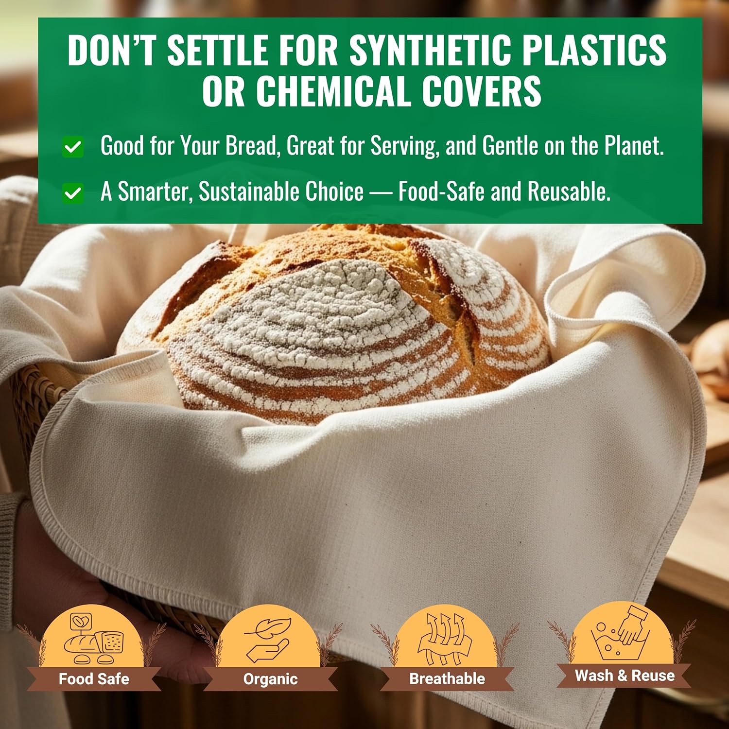 • Generously Sized – Large 28” x 28” dimensions offer full coverage for baking trays and proofing baskets.