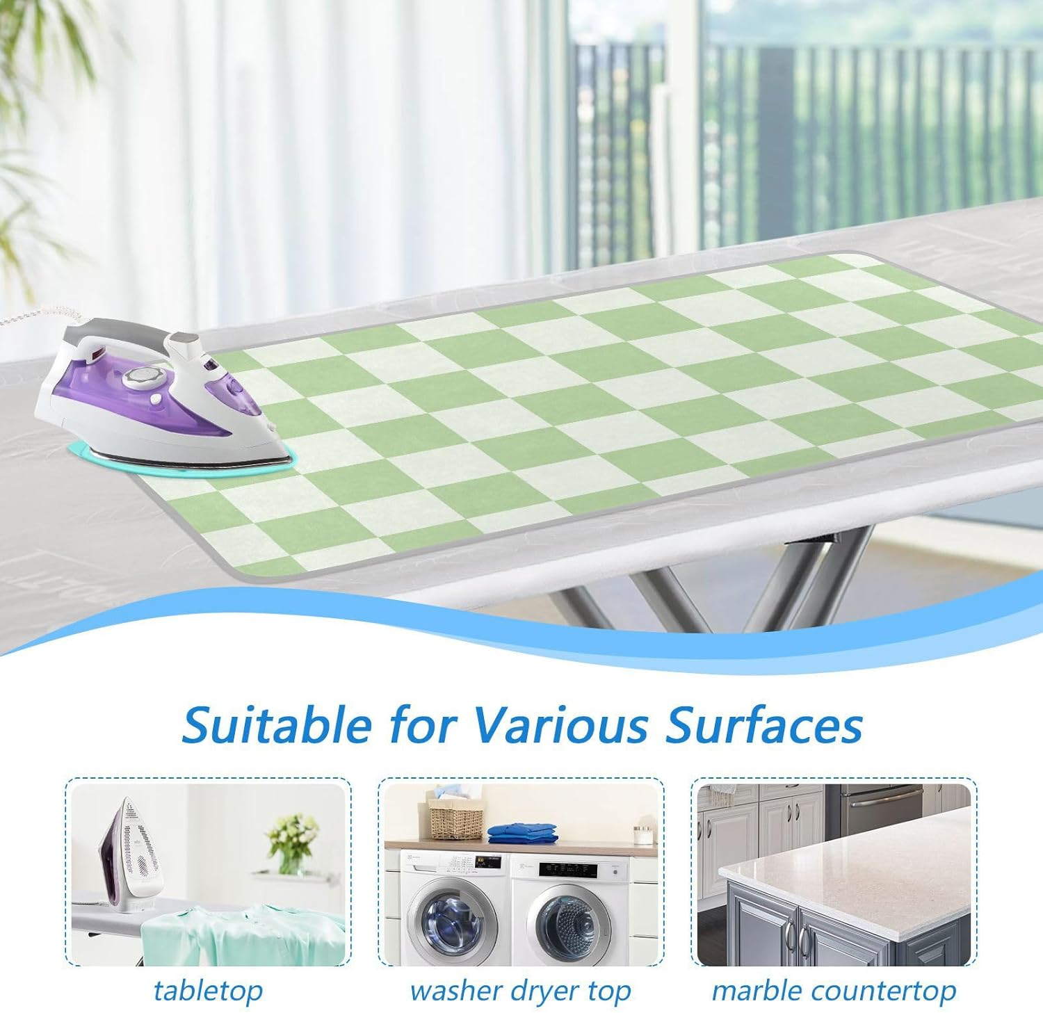 Checkered Mint Green White Plaid Ironing Mat for Table top Portable Ironing Pad Blanket for Washer Dryer Countertop Travel
