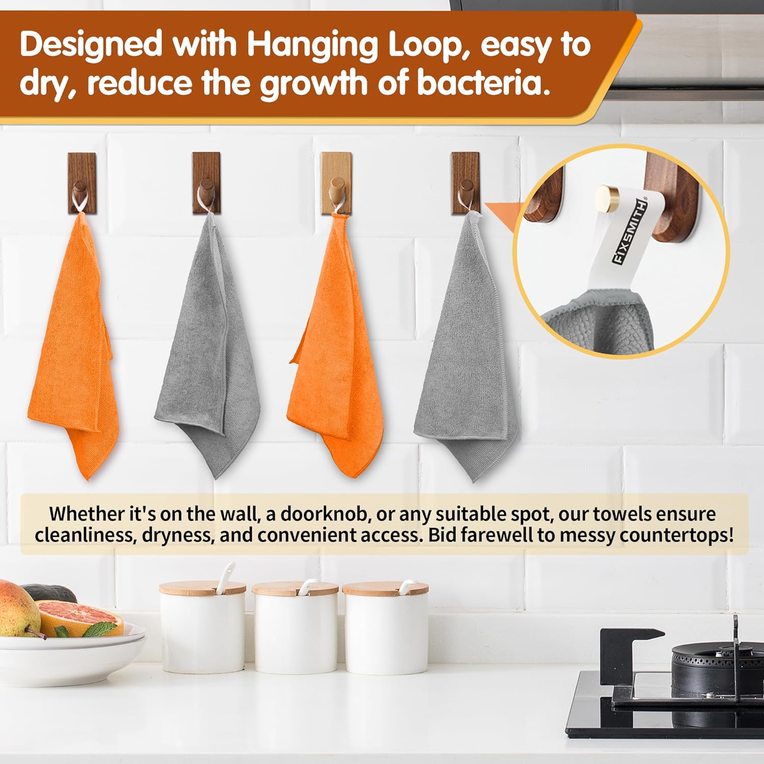 FIXSMITH Microfiber Cleaning Cloth -Pack of 8, Highly Absorbent Cleaning Rags(Grey&Orange), 16"X12" All Purpose Cleaning Towels for Housekeeping, Kitchen, Car, Reusable Microfiber Towels